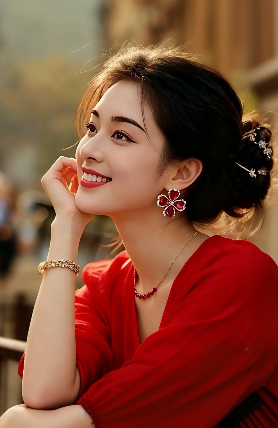 红衣美人倚窗立,锁心深藏意难平。红衣佳人写真