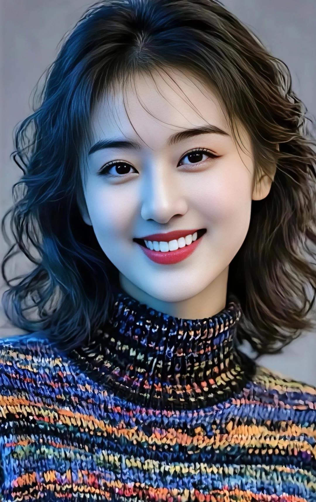 甜美笑容,温柔发丝,色彩斑斓的毛衣,元气满满的一天!🌞💕