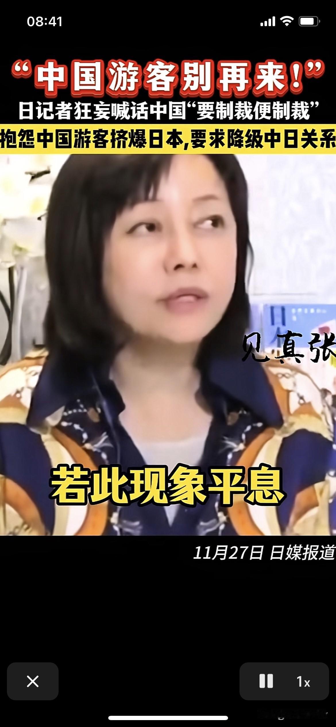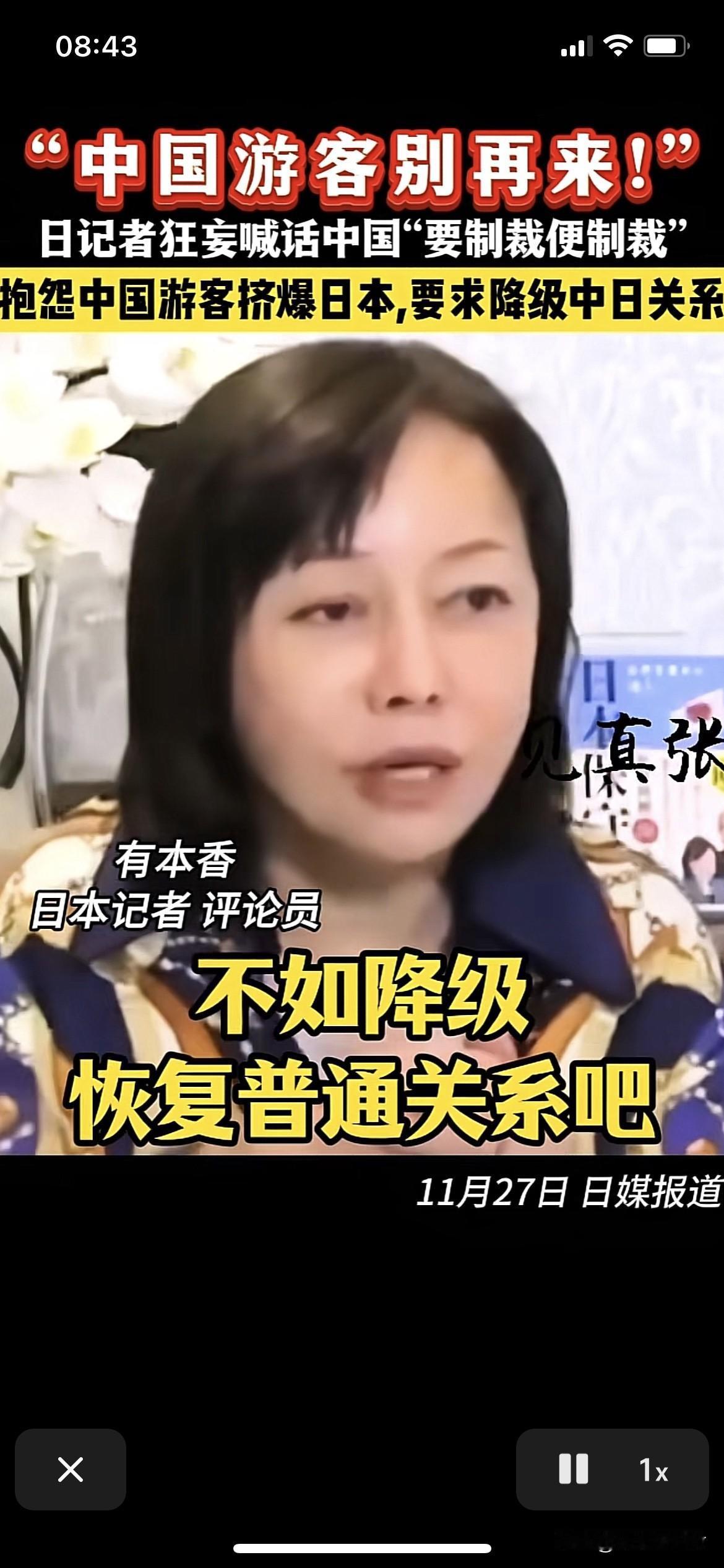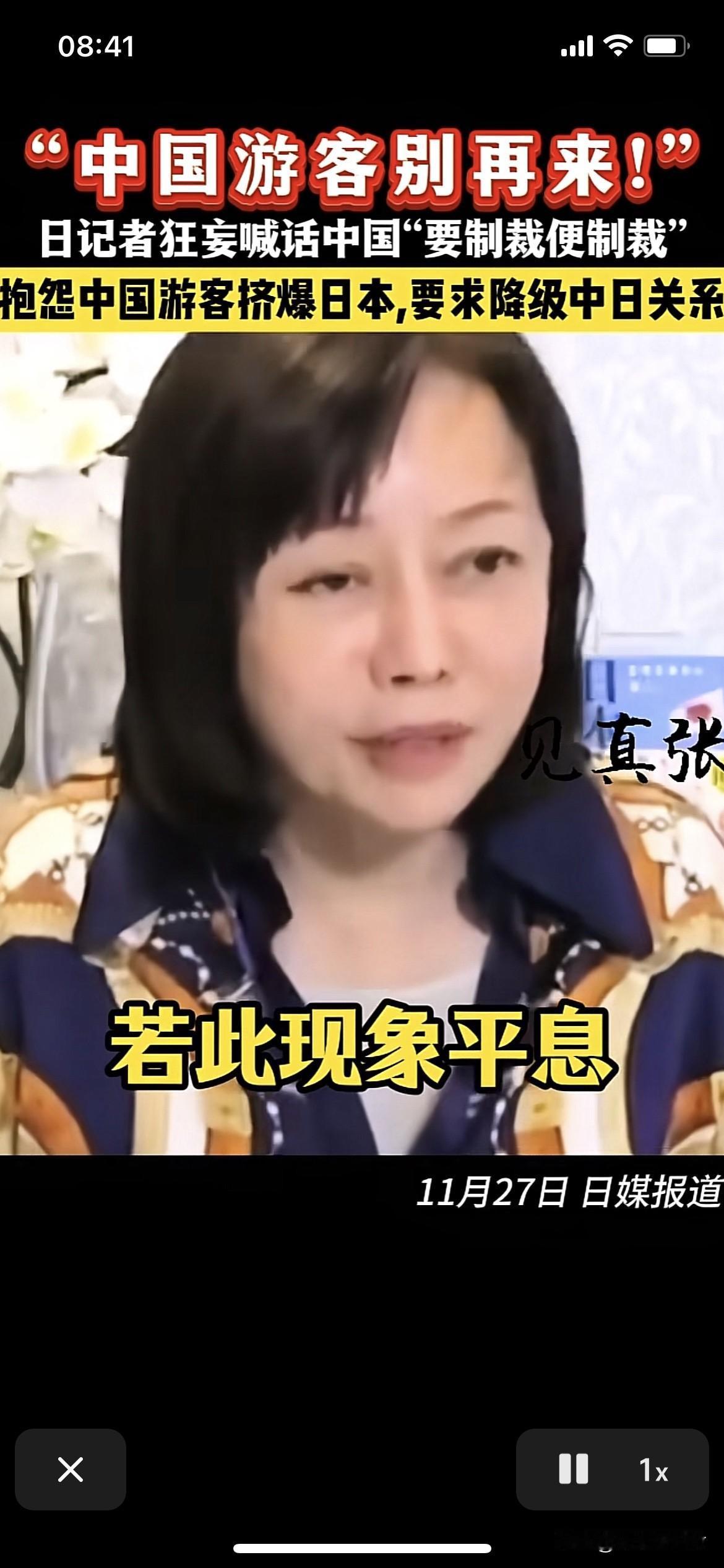 日本记者说:要制裁就制裁吧! 他说:所谓中日友好弊大于利。与其中日友好不如降级为普通关系吧。 我说干嘛要维持普通关系呢!还是老死不通往来吧。 你不喜欢我,我还不喜欢你呢! 把脊梁骨挺直吧。好好发展自己的国家。
