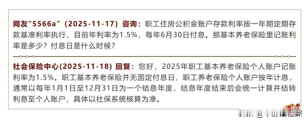 2025年职工养老保险个人账户记账利率为1.5%。 早在近两个月前,在微头条里就已经说过是1.5%,依据是内蒙古的表格。 现在官网已经通过问答的方式确定了这一利率,不用再怀疑了。 很多人就是不信,感觉不可能这么低。 这也是可以理解的,因为近10年以来利率下降的太严重了。 图2是从2016年全国统一利率以来,历年利率的变化趋势。从最高的8.31%降至现在的1.5%。 养老保险的利率与银行利率变化是一致的,银行利率已经降成了这样,社保的利率也不可能高了