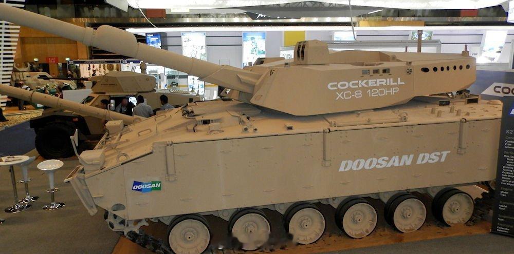 烽火问鼎计划韩国的“K21 XC8”坦克项目。这款轻型坦克于2013年亮相,它将K21步兵战车的底盘与约翰·科克里尔公司生产的XC8炮塔相结合。每天认识一件兵器 该坦克主要用于出口。其主炮是一门瑞士RUAG L/50型120毫米滑膛自动装填炮,也可发射“法拉里克”串联战斗部反坦克导弹。该坦克由一台750马力的斗山D2840LXE涡轮增压V10柴油发动机提供动力,最高时速可达72公里/小时。 坦克装甲车辆