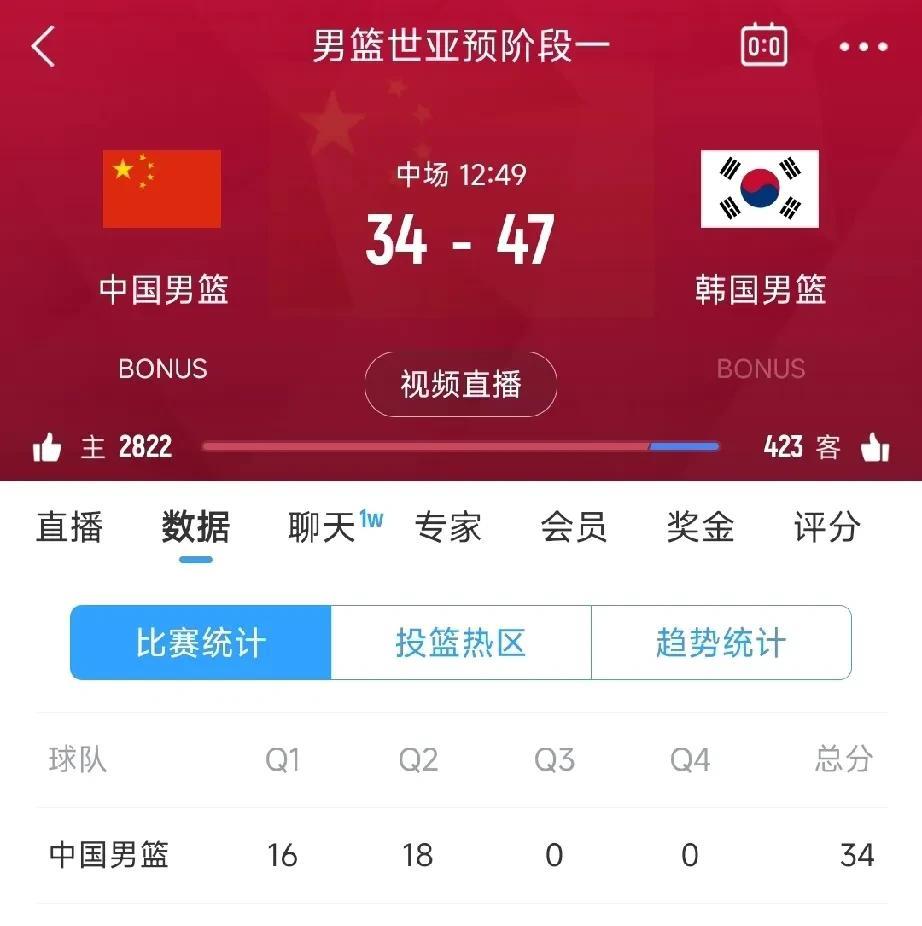 半场落后13分,李贤重半场20分! 世亚预赛中国男篮对阵韩国男篮的比赛,中国男篮半场居然落后13分,主要对方李贤重太准了,半场20分,三分球8中6! 中国男篮方面打的太紧了,高诗岩快攻空蓝不进!三分球8中1,对面三分球投出了16中9的命中率! 但是,不急中国男篮中场及时调整,下半场打回来没问题!