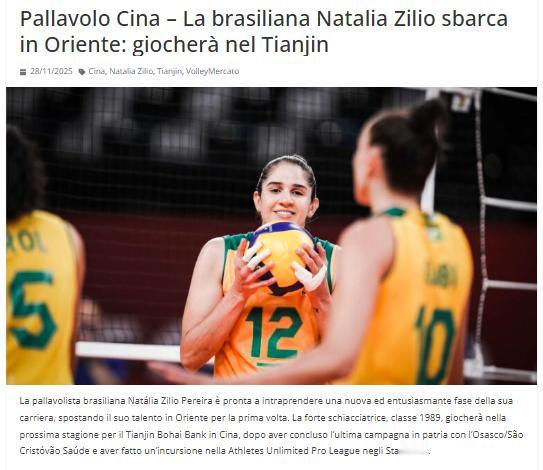 李盈莹出走米兰,天津女排迎来新援:巴西前国手主攻娜塔莉亚 意媒:巴西女排球员娜塔莉亚·齐利奥远赴远东:她将效力于天津队 巴西排球运动员娜塔莉亚·齐利奥·佩雷拉即将开启职业生涯的新篇章,首次远赴远东赛场。这位 1989 年出生的强力扣球手,在结束了上赛季效力于巴西奥萨斯科/圣克里斯托瓦健康队以及美国 Athletes Unlimited 职业联赛的征程后,新赛季将加盟中国天津渤海银行队。 娜塔莉亚的职业生涯可谓辉煌无比。她从巴西国家青年队起步,便大放异彩,先后赢得 2005 年 U18 世界锦标赛和 2007 年 U20 世界锦标赛冠军,并荣膺两项赛事的 MVP。在主教练吉马良斯的带领下,娜塔莉亚在 2012 年伦敦奥运会上斩获金牌,在 2020 年东京奥运会(第 32 届奥运会)上获得银牌,并在 2010 年世界锦标赛上获得银牌。 在俱乐部层面,娜塔莉亚同样成就斐然。她曾效力于索利斯·奥萨斯科、联合利华、雷克索纳/阿德斯和伊坦贝/米纳斯等巴西知名俱乐部,期间统治了巴西超级联赛,共获得五次全国冠军,最近一次是在 2018-19 赛季。 离开巴西后,她也在欧洲积累了丰富的经验。在土耳其,她随费内巴切赢得了联赛和杯赛双料冠军(2016-17赛季),并荣膺联赛 MVP。之后,她先后效力于俄罗斯的埃扎吉巴什维特拉队和莫斯科迪纳摩队,并在 2022-23 赛季再次帮助球队赢得联赛和杯赛冠军。她还曾在意大利联赛的斯坎迪奇效力(2021-2022赛季),并帮助球队赢得了欧洲排球联合会(CEV)挑战杯的冠军。 如今,这位实力强劲且技术全面的主攻即将前往中国,加盟天津队,开启她在东方的首秀。这为她已然辉煌的职业生涯谱写了新的篇章,此前她已在世界顶级赛事中征战并斩获无数荣誉。 来源:电子排球杂志