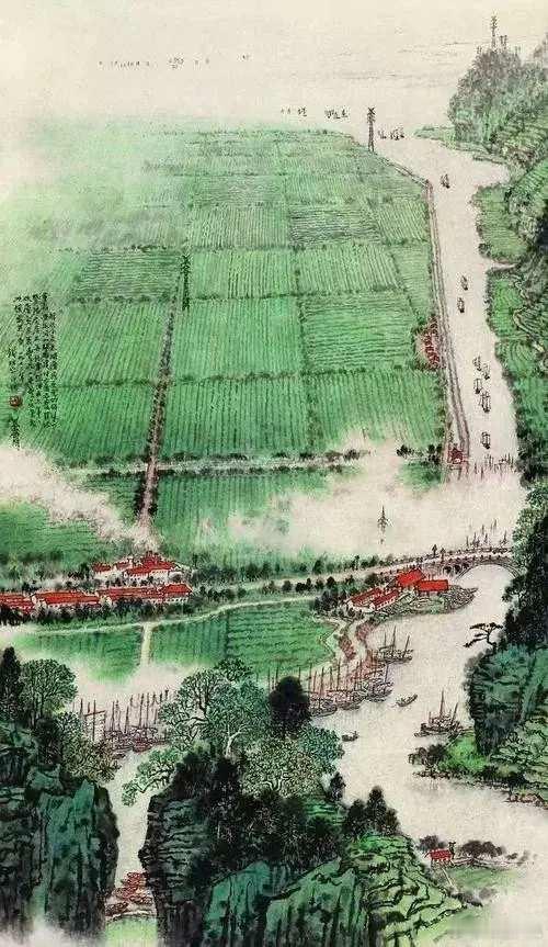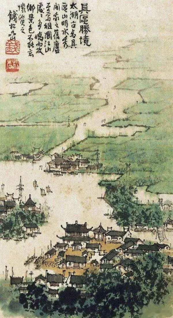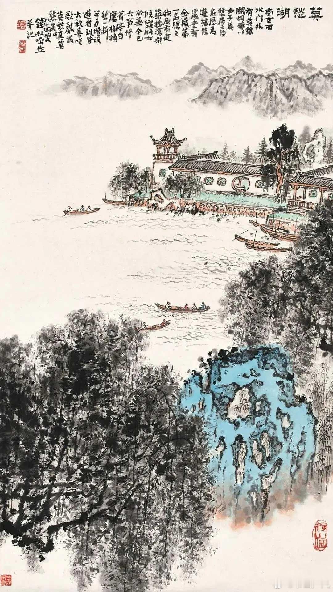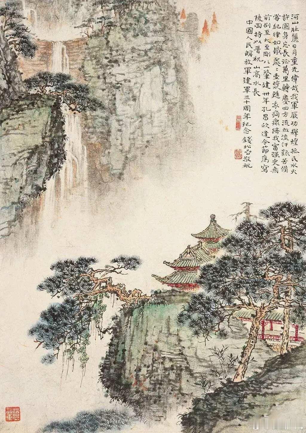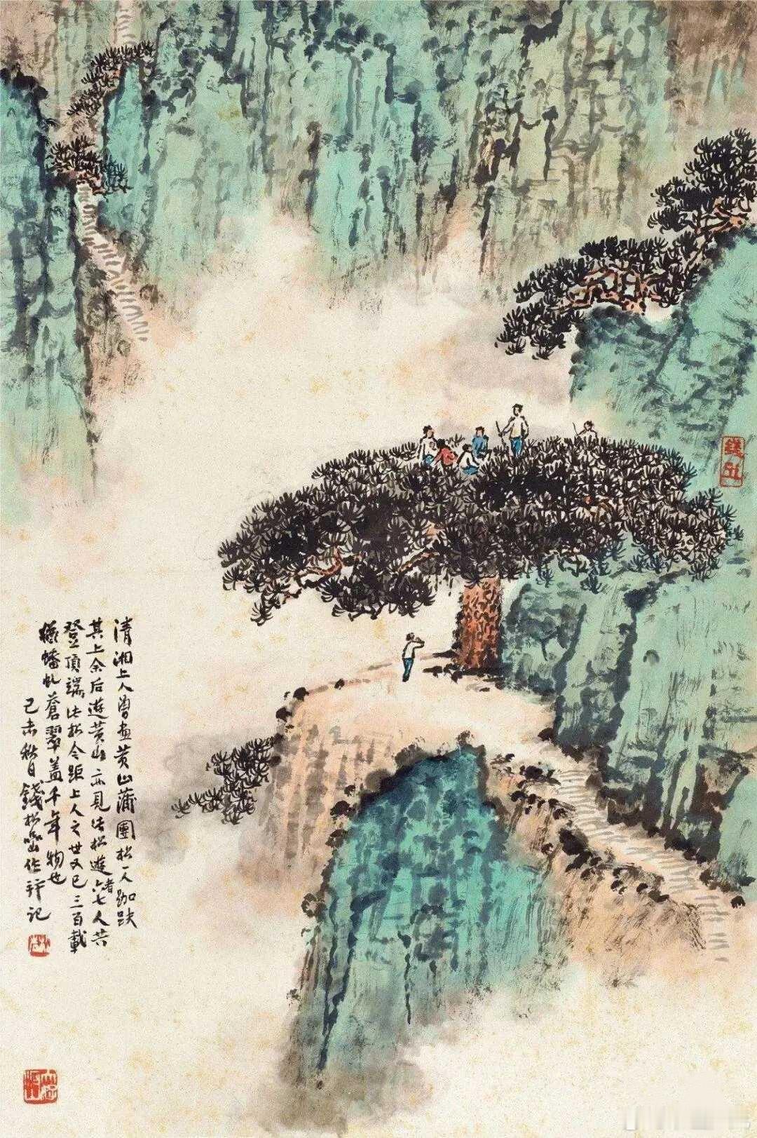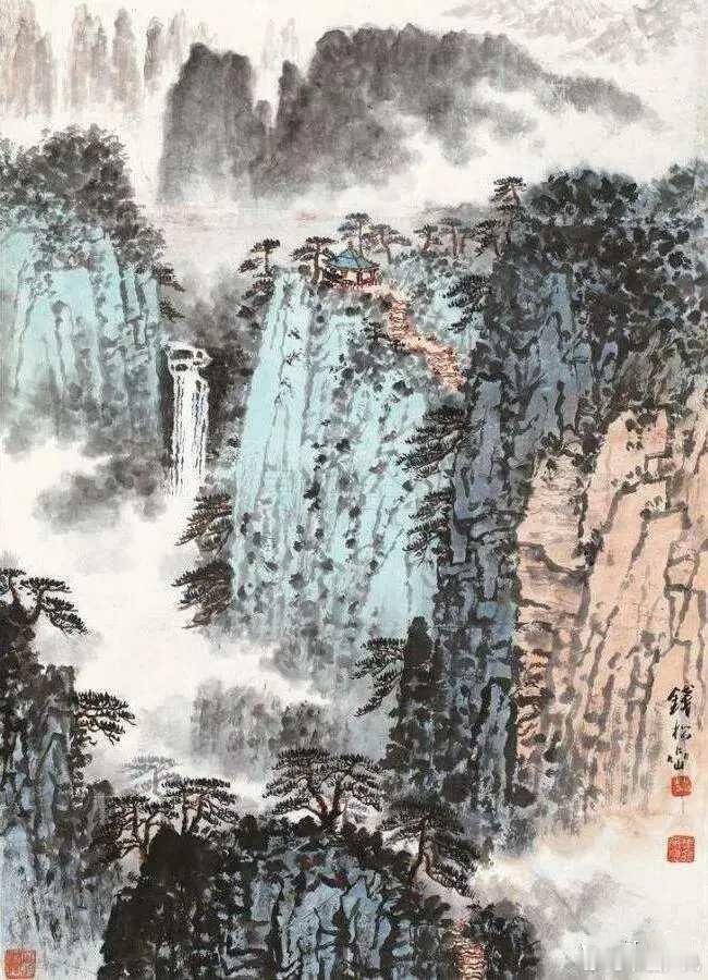 钱松嵒 青绿山水。石青、石绿,为重彩画的主要颜料之一,重彩画有富丽堂皇的美感。天生会画遇见艺术