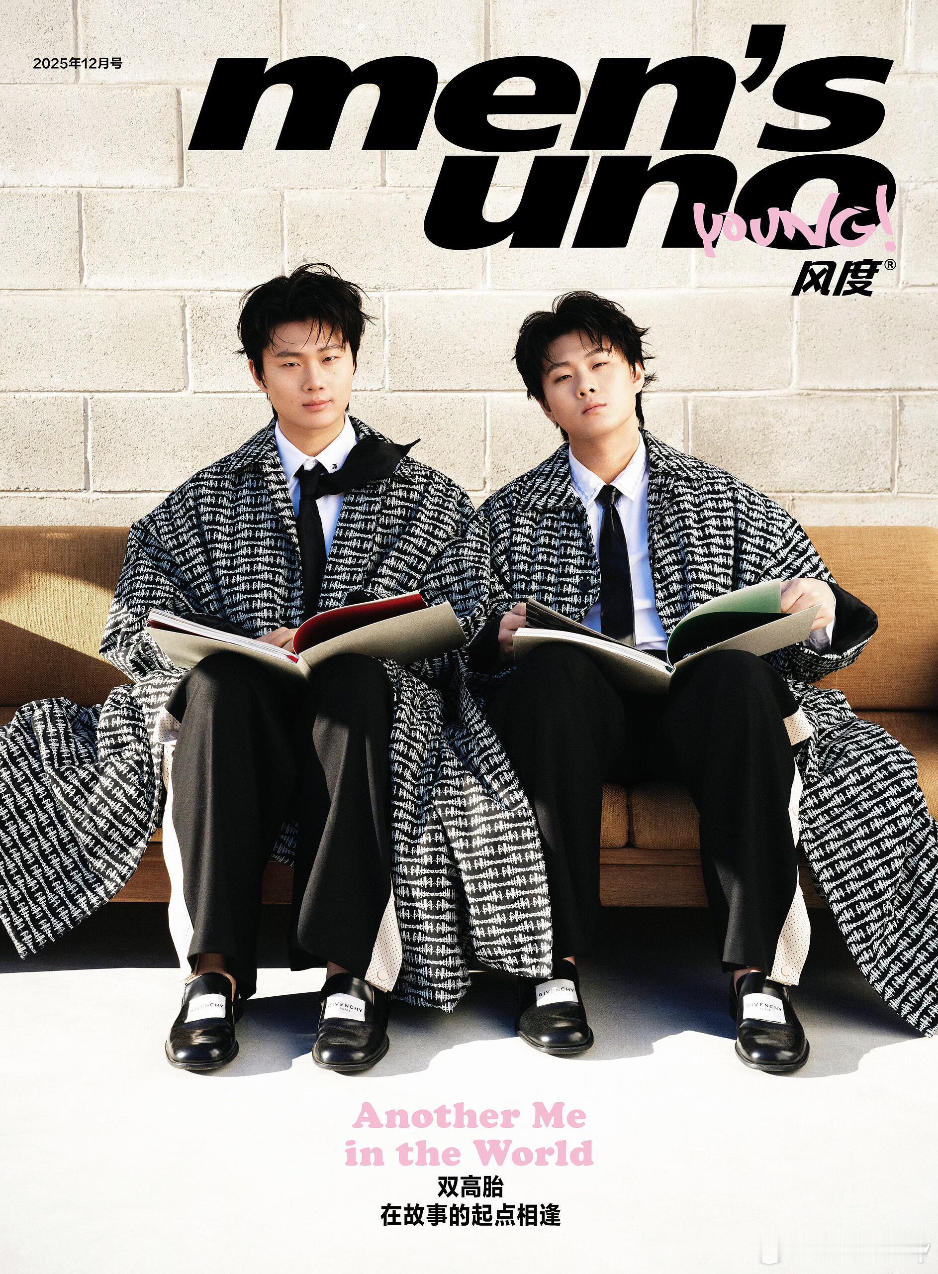 双高胎 |风度men’s uno 生日刊双高胎《风度men’s uno Young!》12月新刊,满印纹理外套裹着文艺肌理,白衬衫搭西装又漾着清爽松弛感,兄弟俩自然撞肩、相视一笑的互动,把“同行”的默契揉进每一帧生图里~ 这对抽中青春“隐藏盲盒”的少年,用同步的步调诠释双倍成长,新岁已至,愿继续并肩奔赴更耀眼的未来!时尚灵感解读|封面大赏 |双高胎生日氛围感大片