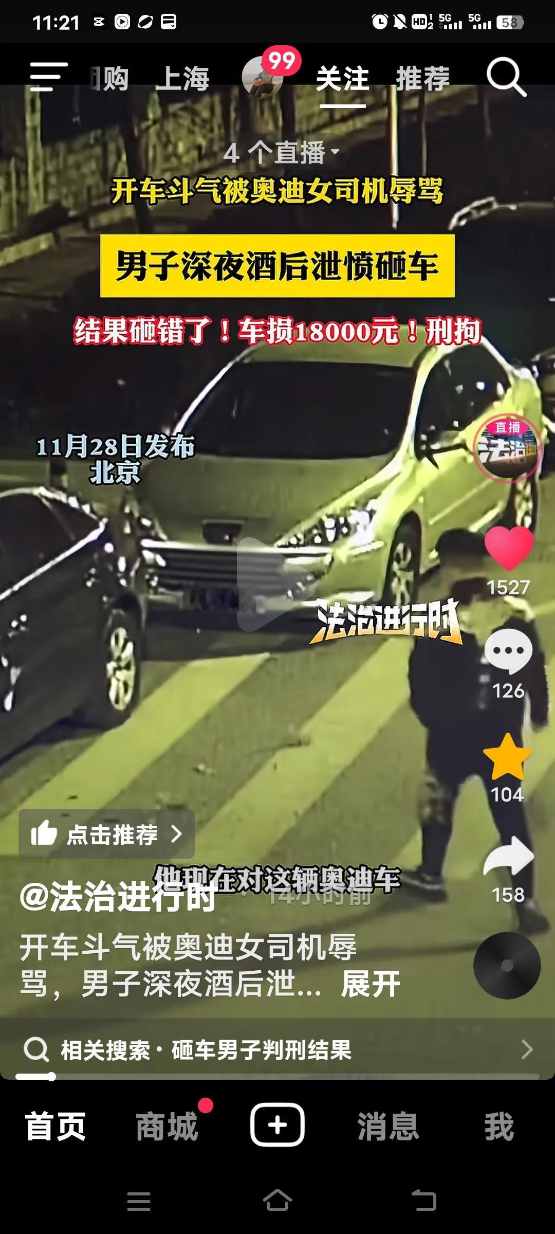北京一名男子开斗气车时遭女司机辱骂,夜间酒后,他误以为某辆车是那名女子的,对着奥