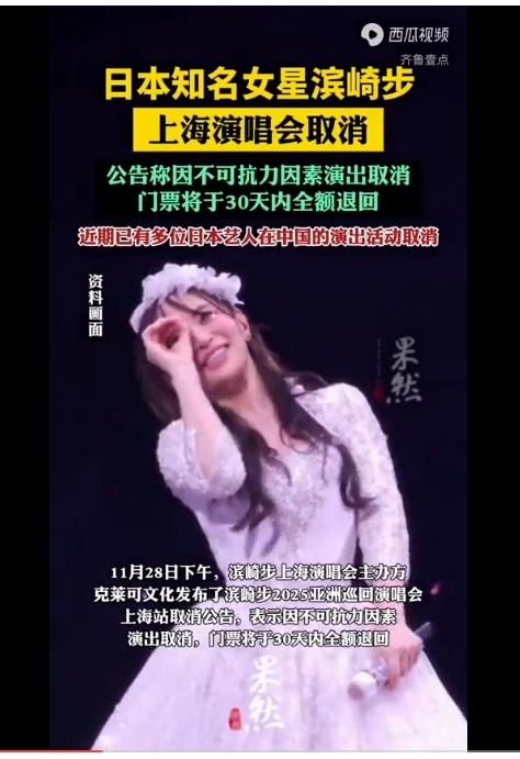 包括滨崎步在内的日本艺人在中国的演出,28日几乎集体取消, 怎么看待这个问题? 如果1945年之前,日本明星在北平或上海举办演唱会,你会买票欣赏吗? 俄乌战争开始后,俄罗斯歌手,还能去乌克兰吗? 有人说,这是和平年代,政治上的事情和演艺界无关, 问题是,高市早苗11月7日的发言,已经定性“台湾有事,日本将出兵”,至今不思悔改,现在的中日之间,事实上处于日本入侵前的某个阶段, 这种时候,保持中日间的文化、艺术交往,已经不合时宜, 这真的是很遗憾的事情,但责任在日本又蠢又坏的嘴炮女首相,与契约无关,与歌手无关。