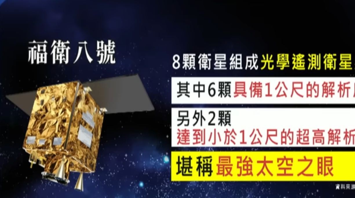 我国台湾省“福卫八号”光学遥感卫星今天凌晨搭载猎鹰9号成功发射升空,该卫星重约400kg,设计使用寿命3年,分辨率1米,后处理分辨率0.7米。最强太空眼