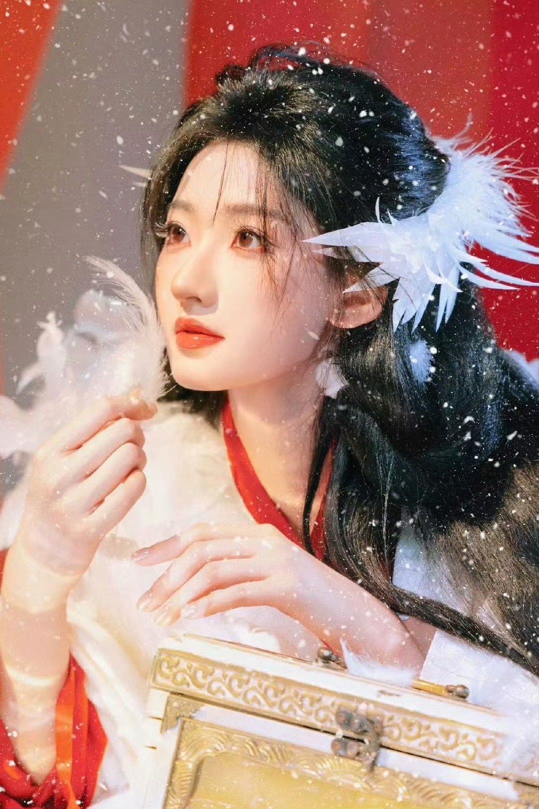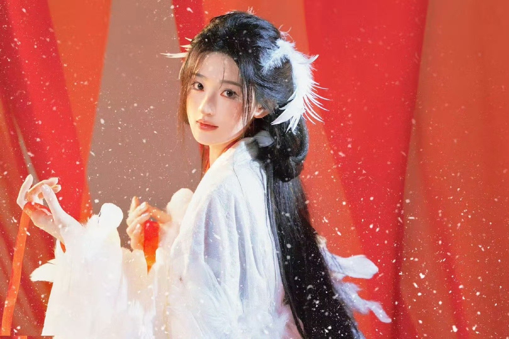 杨雨潼下雪了 雪中的杨雨潼简直就是白鹤淮本淮!羽毛元素和红白配色相得益彰,轻声说着"下雪了"的画面,瞬间梦回初见小神医的那一刻。