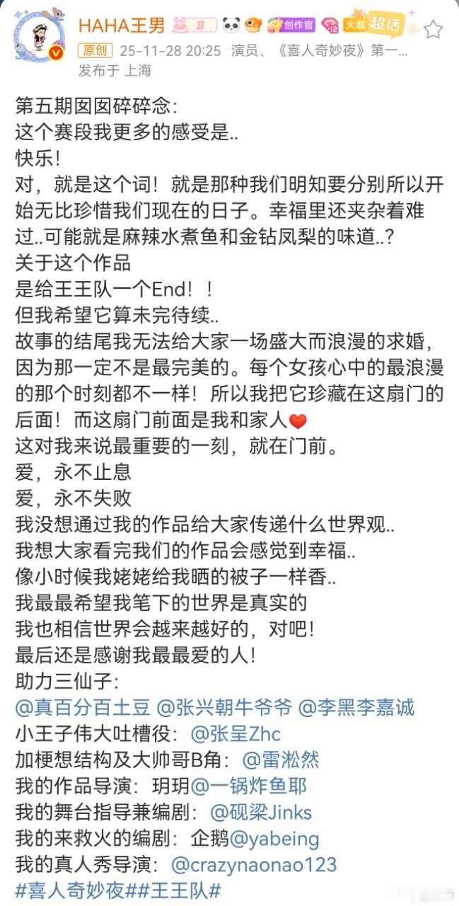 王男说无法给到一个盛大的求婚喜人奇妙夜 王男的浪漫观让我想到了那些温暖细腻的瞬间,最美的爱情不是形式,而是陪伴与守护。