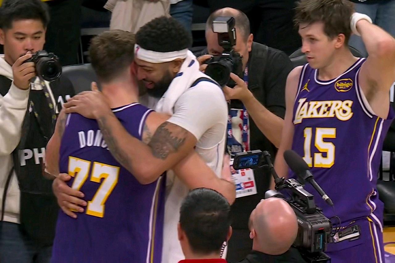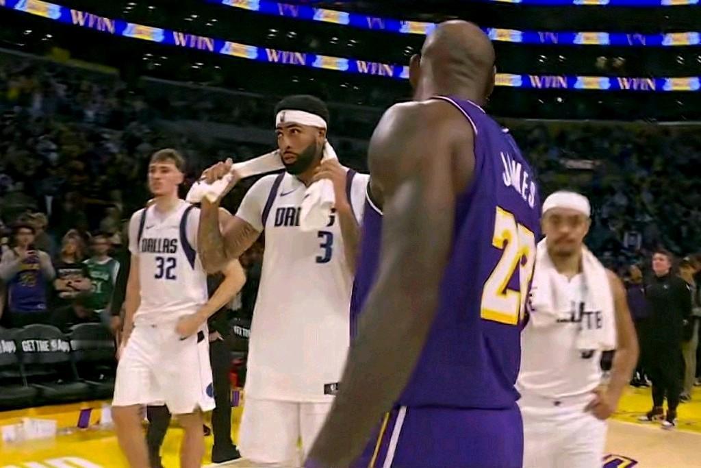 万万没想到:赛后老詹和戴维斯居然无任何交集与互动!在湖人主场战胜独行侠的比赛结束以后,两大球队的熟人老朋友太多了,可惜当戴维斯和老詹走到一起的时候,双方并没有握手搂抱寒暄,必经是曾经一起的夺冠队友啊,戴维斯反而和东契奇的互动很多,我猜估计是,湖人新赛季不断的赢球,独行侠不断的输球,戴维斯目前打打停停,成了蓝领中锋,老詹反而打的非常轻松惬意,双方的处境落差太大了,不得不感叹:双方变化太大了! 湖人 戴维斯
