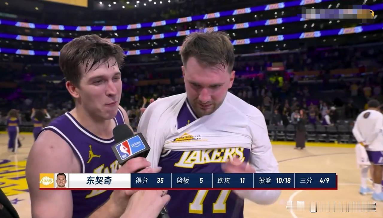 湖人双星东契奇和里弗斯的关系真是太好了!在今天湖人主场以129:119击败独行侠的赛后采访中,发生了特别有趣的一幕。当时东契奇正在接受媒体的采访,此时只见里弗斯来到东契奇的跟前说道:“我现在的扣篮次数比他多”,对此东契奇说道:“没错,可是你不想防守。” 东契奇和里弗斯的聊天真是太有趣了,从他们的对话中我们可以发现,目前东契奇和里弗斯相处的非常愉快。