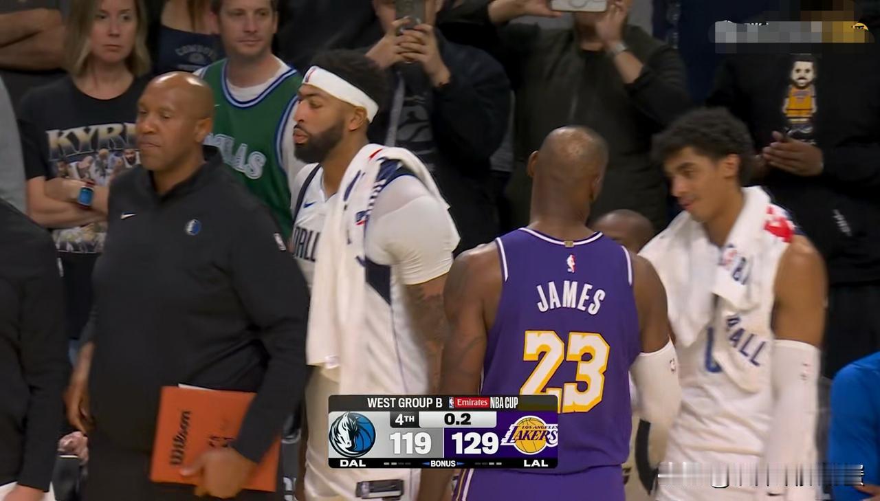 湖人超级球星詹姆斯真是太会来事了!在今天湖人主场迎战独行侠的比赛中,当时比赛接近尾声,湖人以129:119领先对手。值得一提的是,还没等裁判吹响比赛结束的哨声,只见詹姆斯主动走到独行侠的替补席和前队友浓眉、克里斯蒂、拉塞尔一一拥抱致意,展现了一位超级球星的风采。