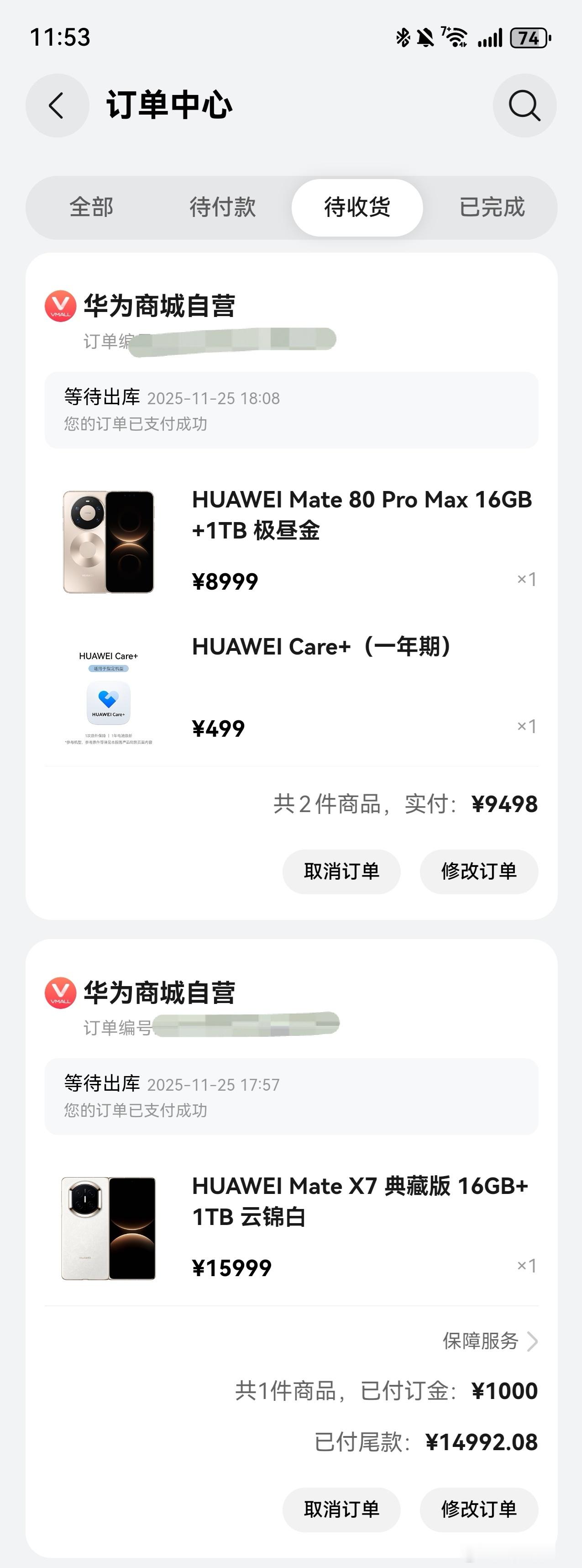 大伙预定的华为Mate 80系列和Mate X7,都拿到了吗?很神奇啊,这次我在官方商城买的两台机器,都没发货。反而之前在线下门店订的机器,昨天中午直接去取了。