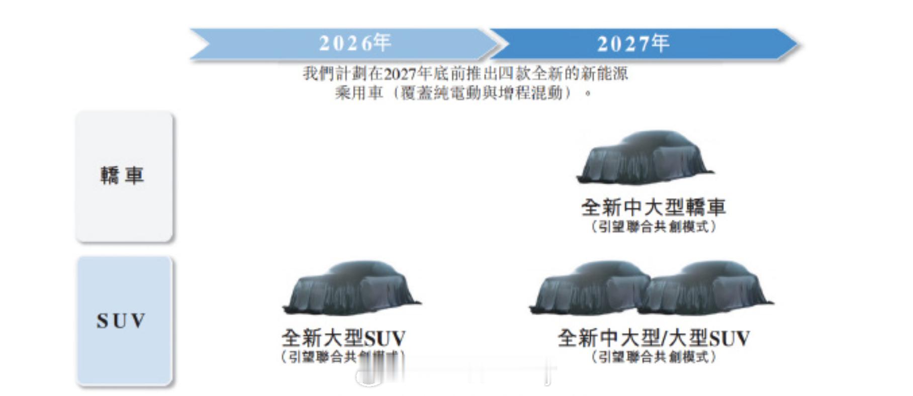 阿维塔新品有段时间没见着了确实自从06之后没看到啥大新车不过26年开始至27年有不少新车按照配图来看是4款其中2026年是一台新增的大型SUV2027年会有三款新车分别是两台中大型轿车,和大型SUV新车种草阿维塔