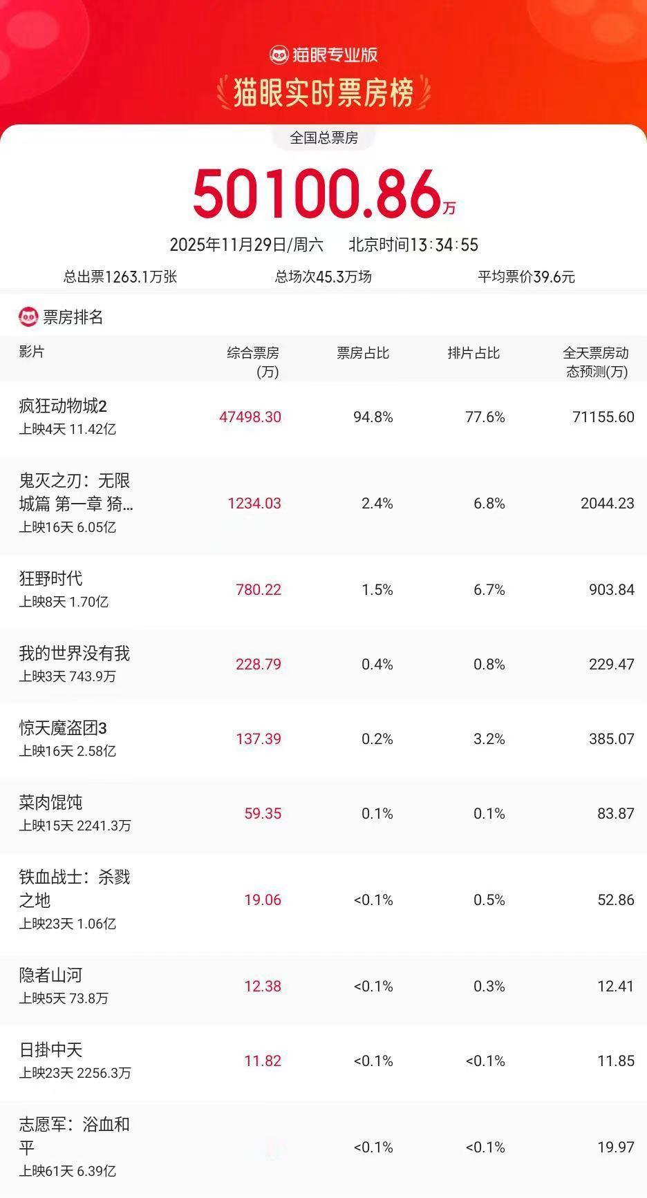 时隔279天大盘单日票房再破5亿 据猫眼专业版数据,11月29日大盘单日票房突破5亿,继2月22日后时隔279天大盘单日票房再破5亿。这就说明不是市场不行,不是观众不行,是电影不行!