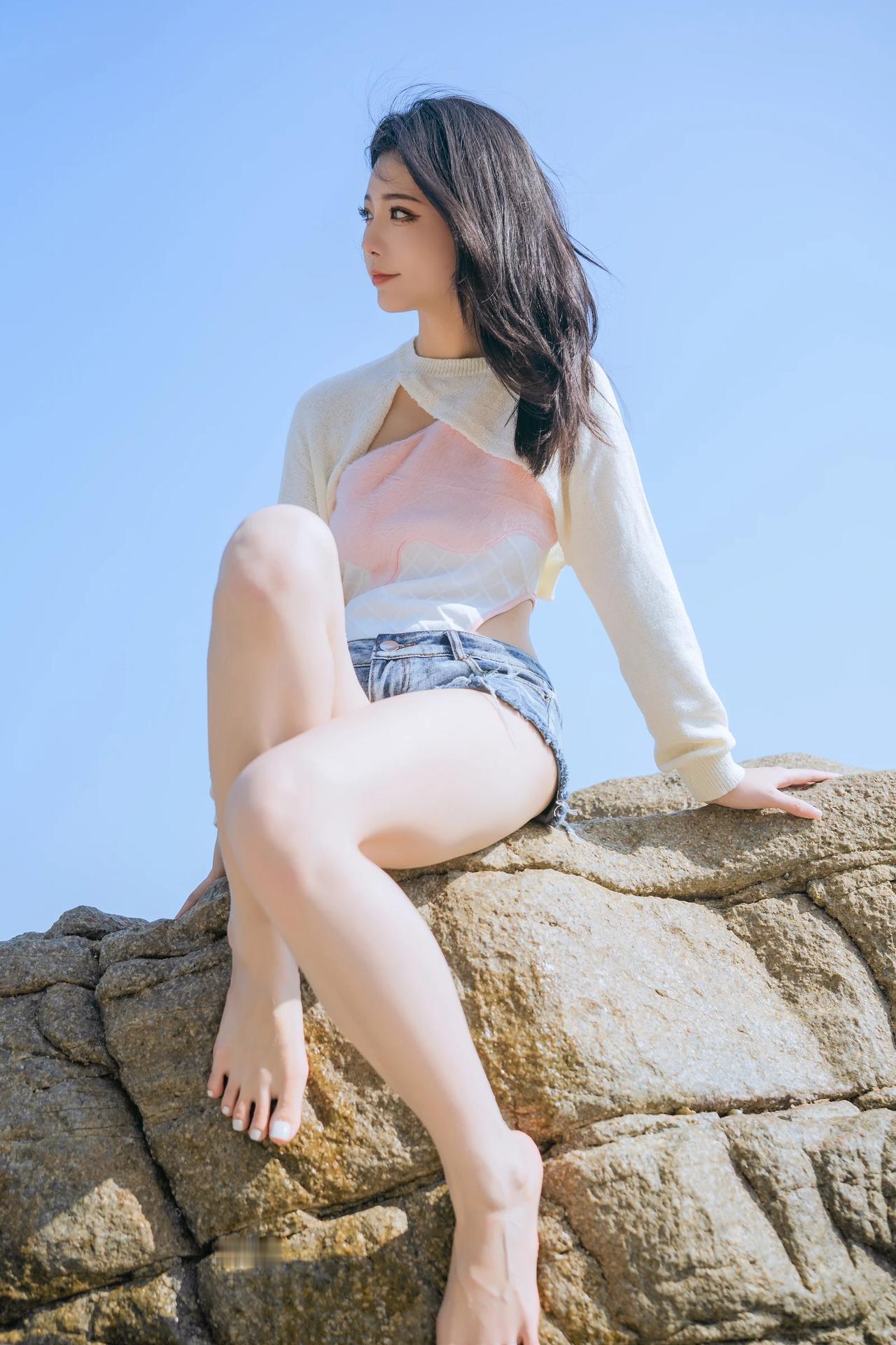 双马尾的她盘腿而坐,米白色蒲扇掩不住那份俏皮;草帽下的她赤脚交叠,折扇轻点间尽显