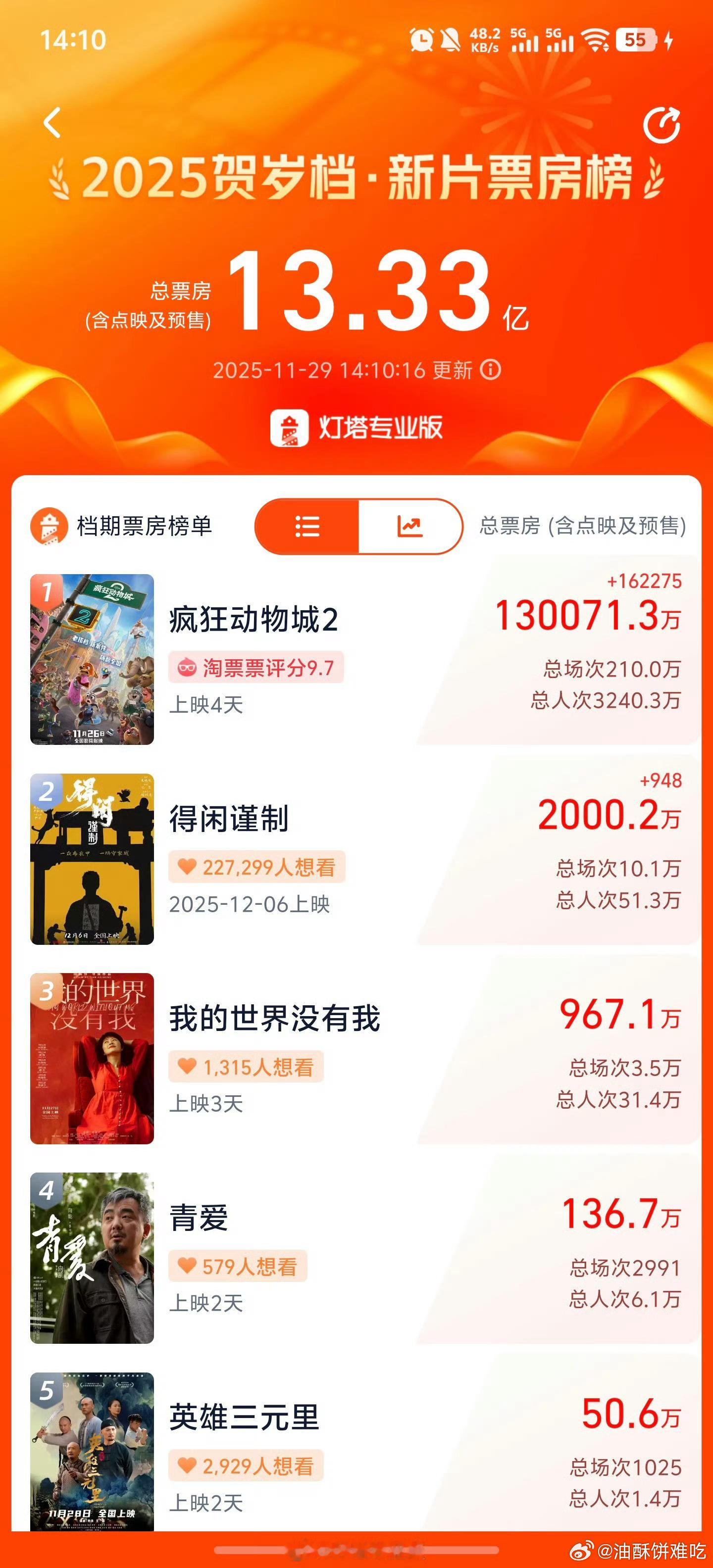 一己之力,带动大盘飞升,这就是电影《疯狂动物城2》的神奇魔力。今日收官电影票房将