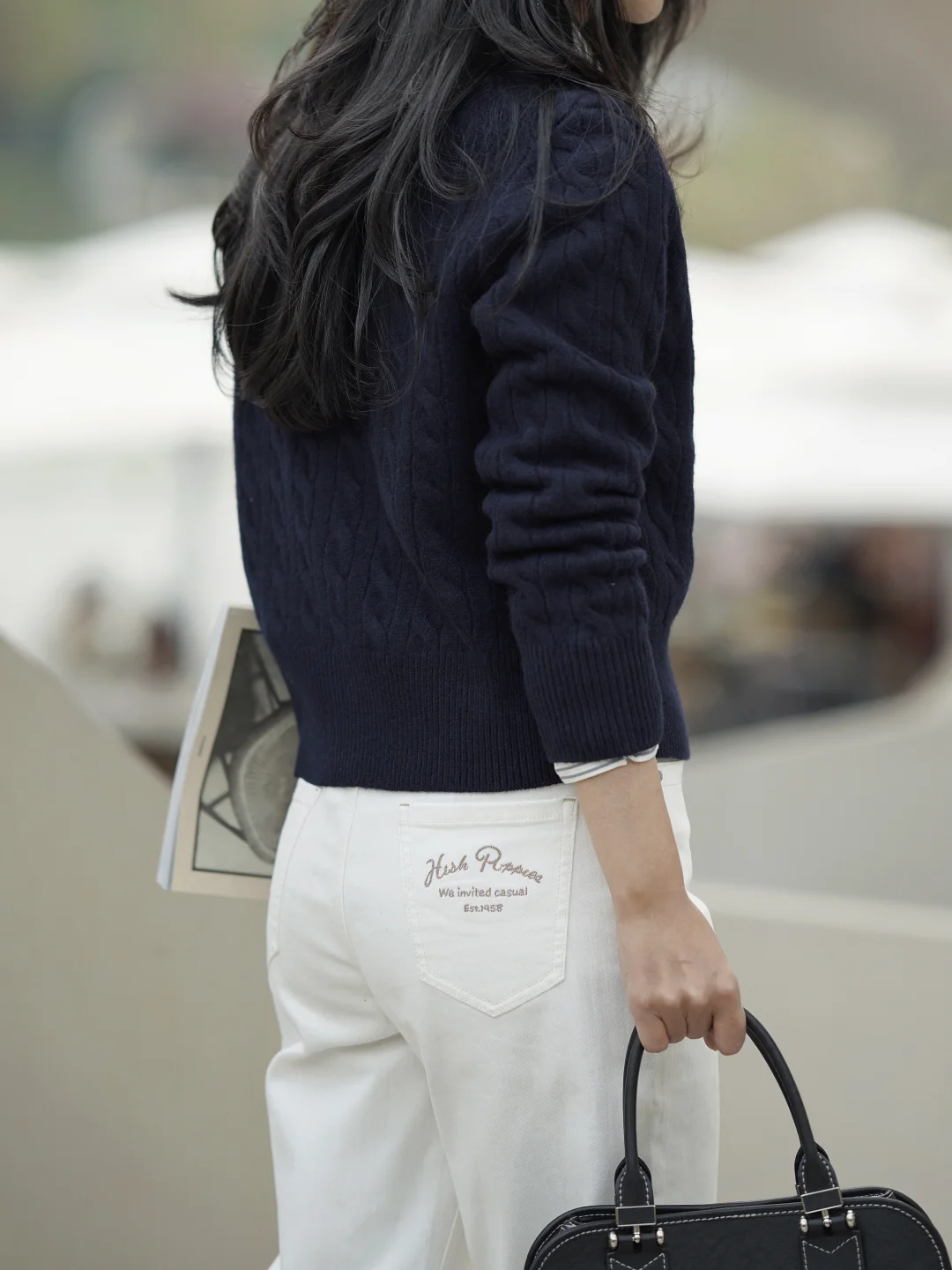 没有繁复的装饰,甚至没有一件耀目的配饰,一切却浑然天成——那是被时光浸润过的“老钱”风度,不张扬,却自有分量。朋友打趣说,这件毛衣是女明星何泓姗同款,你穿着竟也有些自己的气质和味道,我笑而不语。