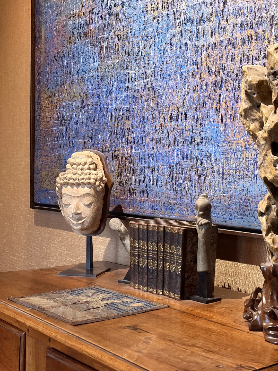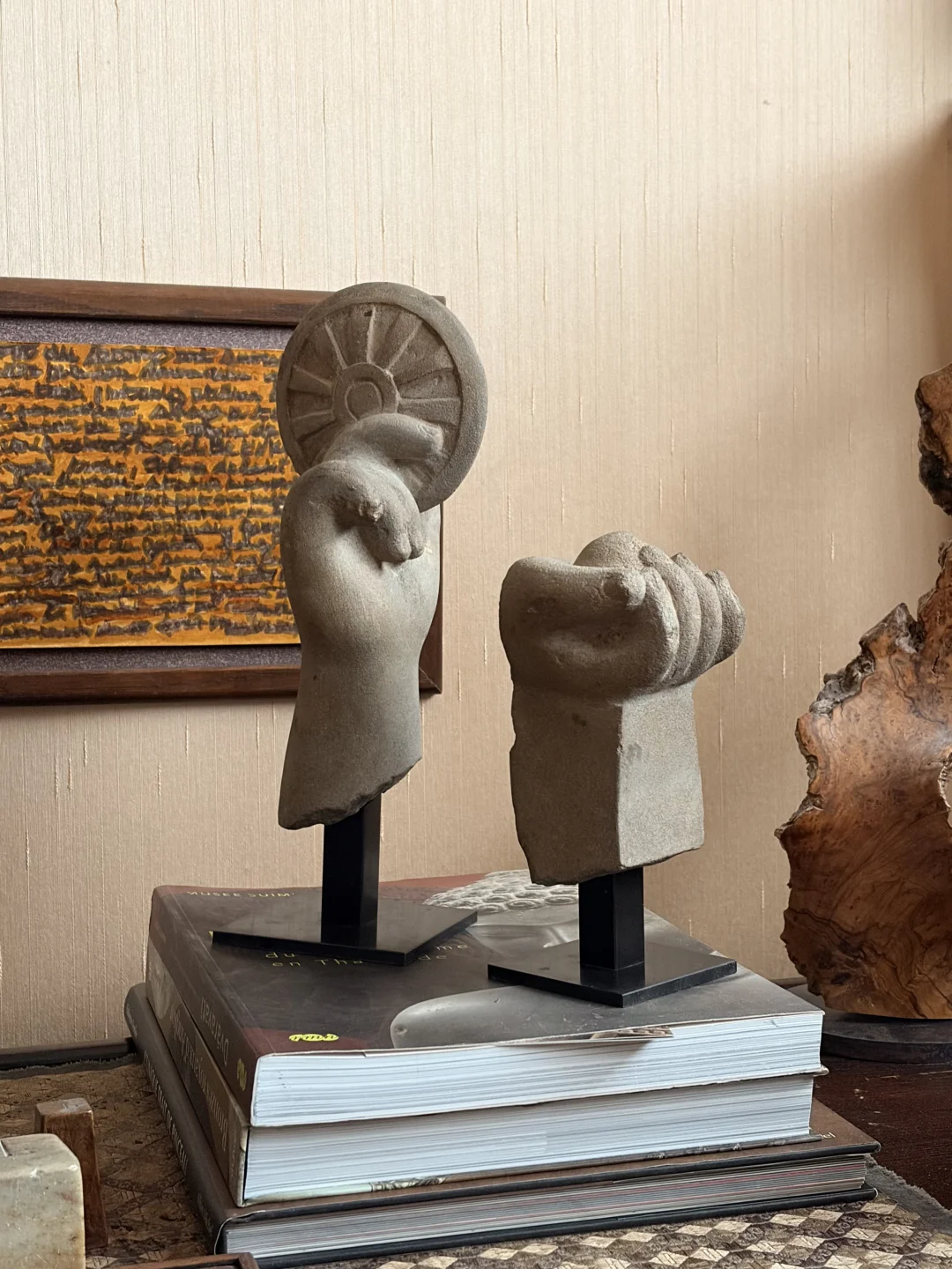 这次来拜访并朋友的家顺便浅谈了一下东南亚艺术的发展,四十余年的收藏让每个角落都充满了能量与美。此次拜访有幸购藏一组前吴哥时期Phnom Da风格的毗湿奴右手,希望不久的将来我也能打造出一套类似的空间。