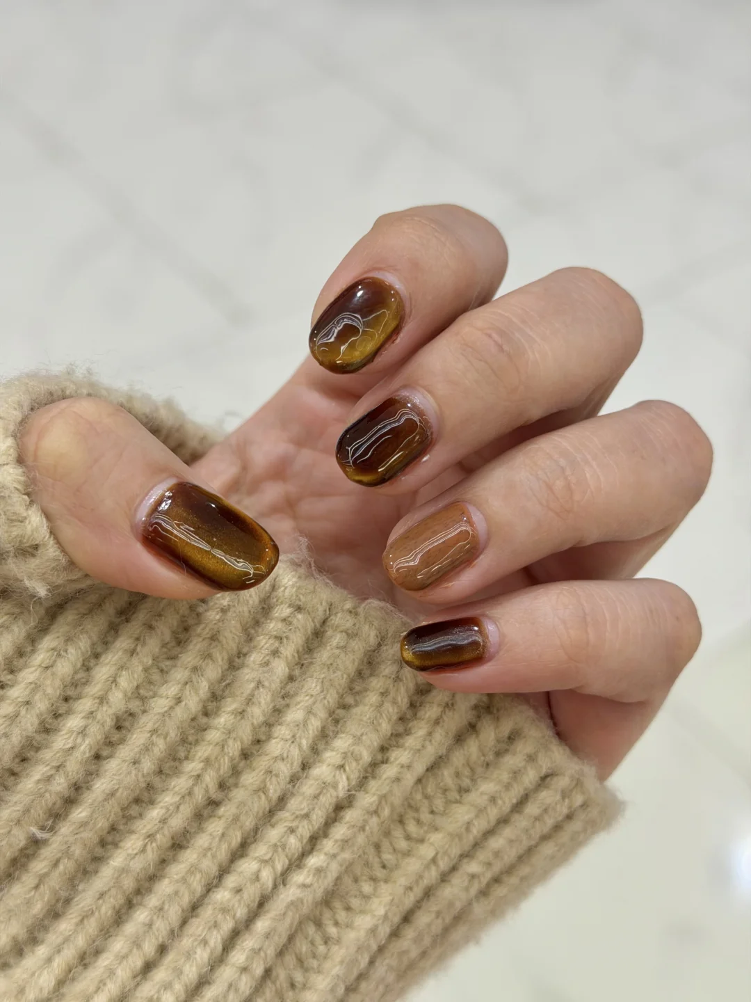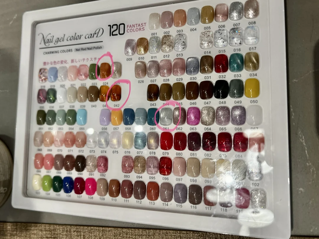 42琥珀色两层 ➕61猫眼一层➕42琥珀色一层(刚涂完是银色,涂完一层就变金色了)➕24皮草跳色 大拇指四周全吸,其他侧吸 做完效果相当满意,这个姐姐技术不错[偷笑R]