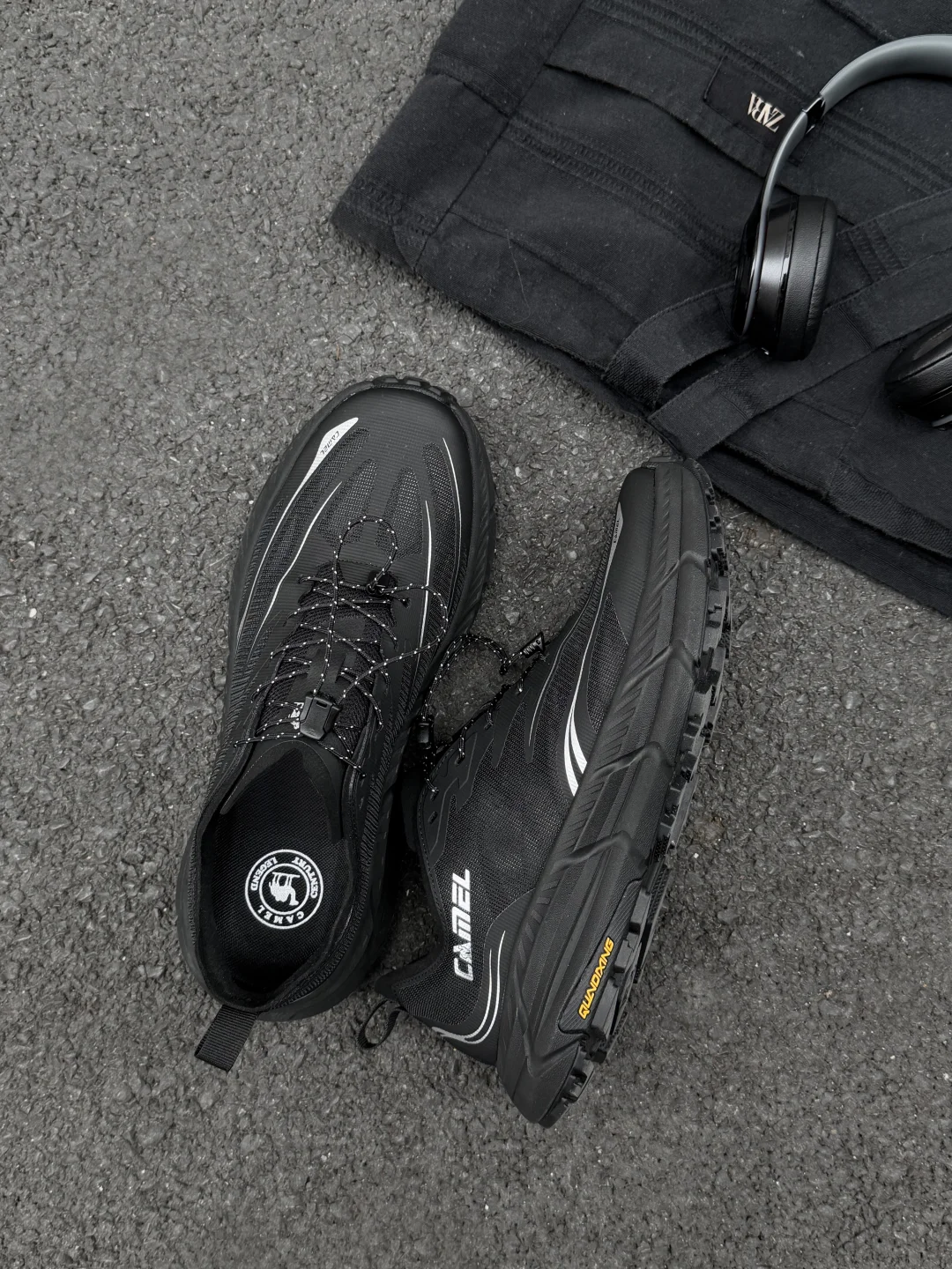 中底C-SUPERFOAM缓震科技绝了!55%回弹脚感软乎乎的,还特别轻量化,纱罗弹丝网面也很透气,跑完全程脚都是干爽的,完全不闷脚!完美契合:柔碳黑科技,探野稳定器而且日常通勤穿搭也能驾驭,黑色随便搭都好看!