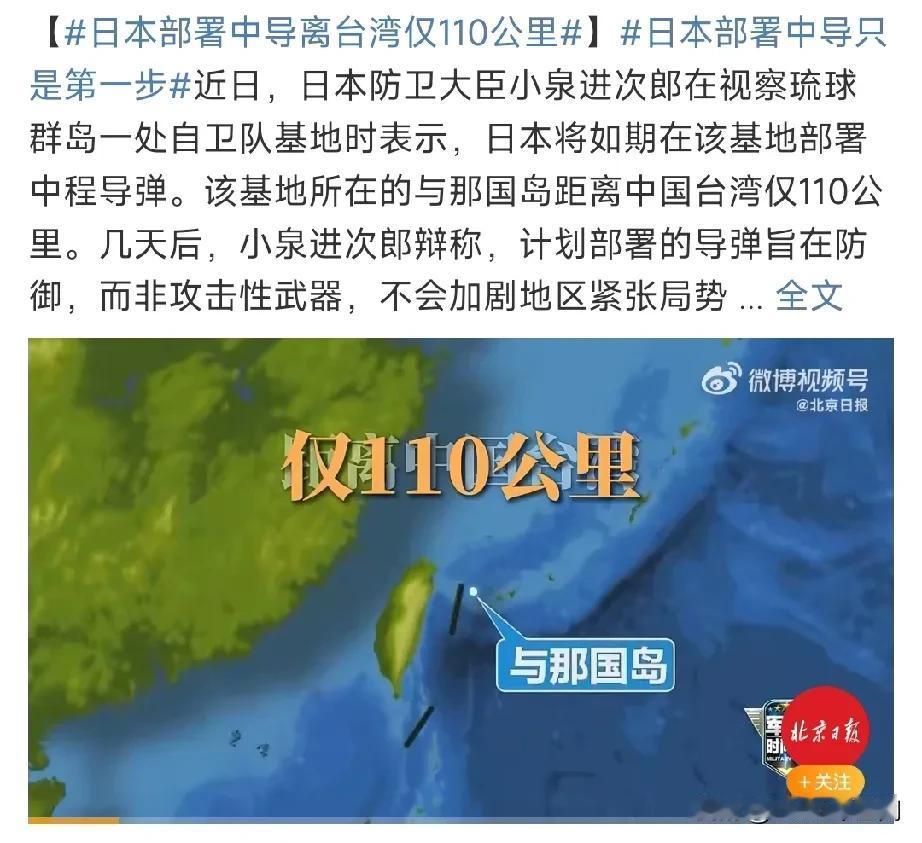 日本部署中导只是第一步! 现在距离台湾只有110公里,接下来,日军会以各种办法、各种理由无限接近台湾,同时制造储备越来越尖端的大规模杀伤性武器来获得最大战斗力最大与信心: 所以,日本部署中导只是第一步,第二步或是全境覆盖台湾,第三步或是制造事端…… 最后,决战或首先在岛上打响。