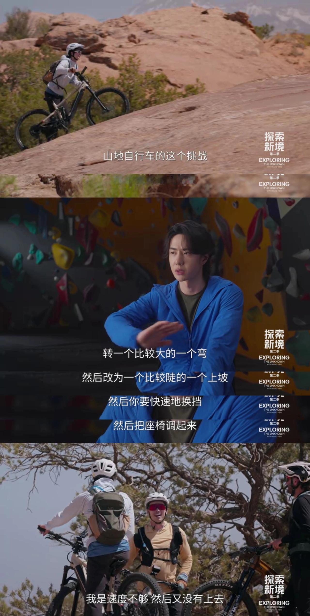 又听到熟悉的王一博说的“one more try”了,从《探索新境2》瞬间爷青回《极限青春》[捂脸]。 挑战山地自行车,全场看不到王一博的沮丧和不耐烦,全程是积极的乐观的稳定情绪和时时扬起来的笑脸,“还挺好玩的”。 “one more try”和《探索新境》第一季里“我不相信我不能够完成,我知道只是时间问题”异曲同工。 永不言败,永不言弃,自信,乐观,热烈,又极具逻辑思维和专业角度的归纳总结,王一博这种人,做什么能不成功? 王一博 王一博探索新境2