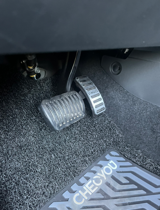 关于刹车踏板与油门踏板水平差距太大的处理 之前我发贴提到过新06的刹车和油门踏板水平距离有点大的问题,怎么调整座椅都不是很适合。因为当座椅调到油门踩得刚适合的时候,腿踩刹车就感觉弯曲得不舒服,当把座椅往后调到踩刹车腿没那么弯曲感觉舒服后,再来踩油门时,油门踩一点点是可以的,如果深踩的话感觉腿又不够长,要用力伸长腿,久而久之感觉有点累。所以只能网上买个油门踏板,单独装上,变相垫高了油门踏板,与刹车踏板的水平差距没那么大。用两天后,感觉好了点,等跑趟长途看看使用效果再来分享