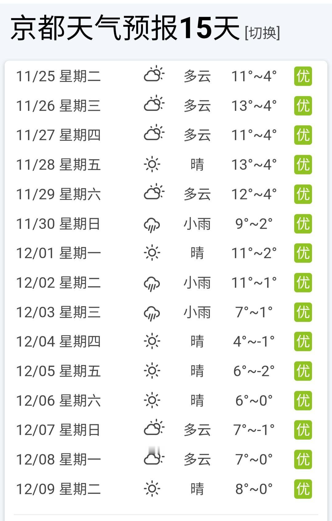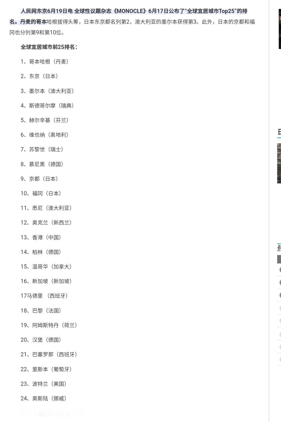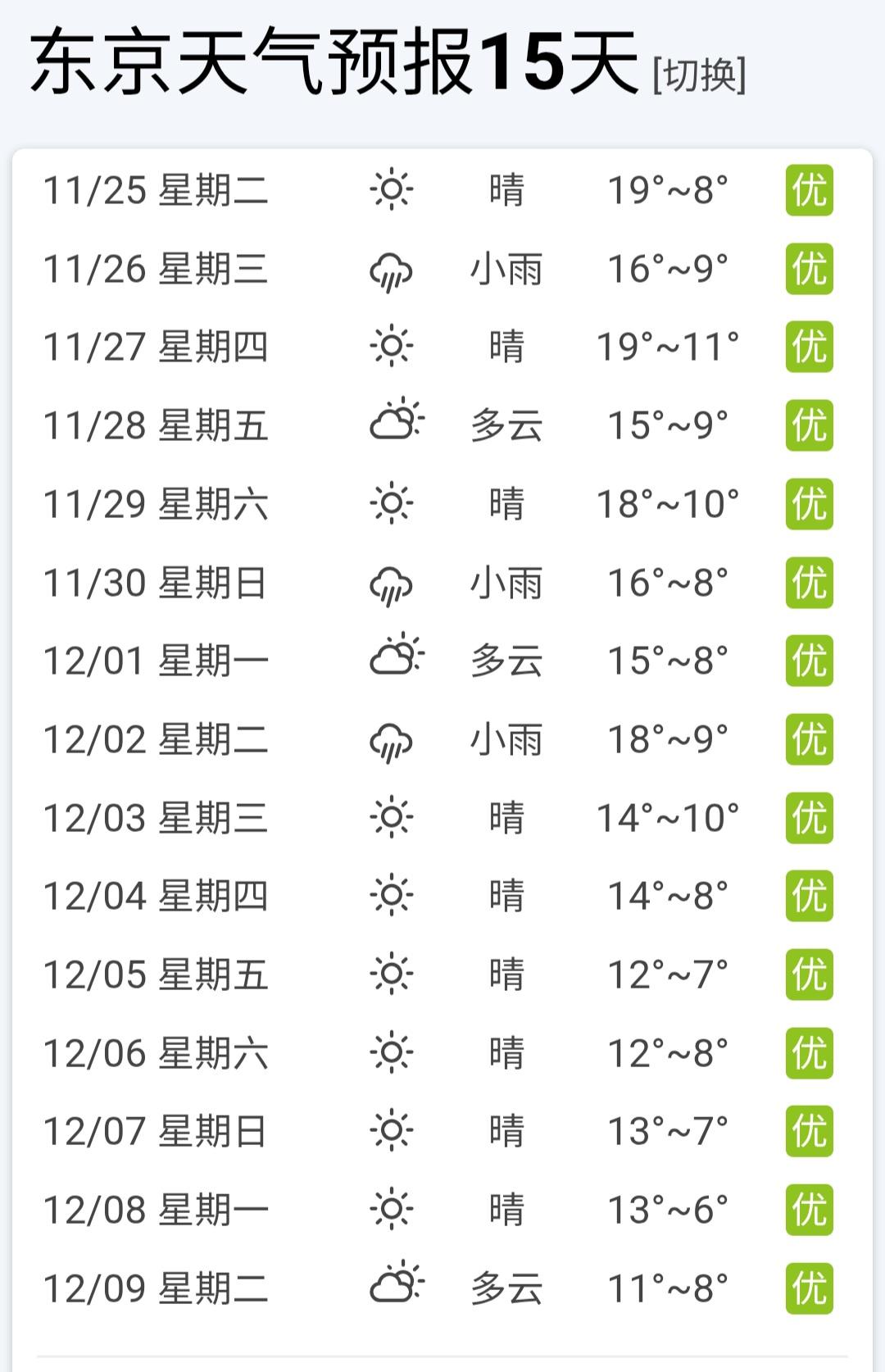 去上海还是东京?求助网友帮个忙。 我们原计划下周去上海,欣赏今年最后的梧桐老马路老上海秋色。没想到近日出现网上一片上海雾霾加重的吐糟声音。图1、2。 我查天气预报,前几天上海雾霾最严重,今天开始后续都是空气质量良,根据我在北京的经验,预报的良,其实是肉眼可见的轻度雾霾。但各地对蓝天白云影响程度不同。 恳请上海网友:拍个今天上海城景与天空照片上传到评论区看看。 如果雾霾影响不大,仍可见一定蓝天白云,那就赶紧下单买票好了。上海酒店上周就预订了。 否则就只能改计划去东京京都了。 我搜天气预报,东京与京都长期连续空气质量为优(见图3~5)。 我记得曾看到过一条新闻,全球性杂志《MONOCLE》公布“全球宜居城市Top25”的排名。丹麦的哥本哈根拔得头筹,东京名列第2,澳大利亚的墨尔本获得第3。此外,京都和福冈也分列第9和第10位。排名榜详见图6。各位有啥看法?@真业心学创始人东方赢 欢迎评论。