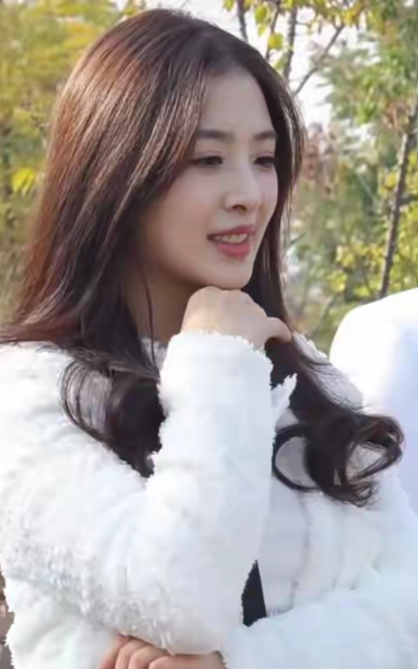 张含韵回成都看熊猫,本人穿小香风皮卷发 看起来像大学生一样甜美