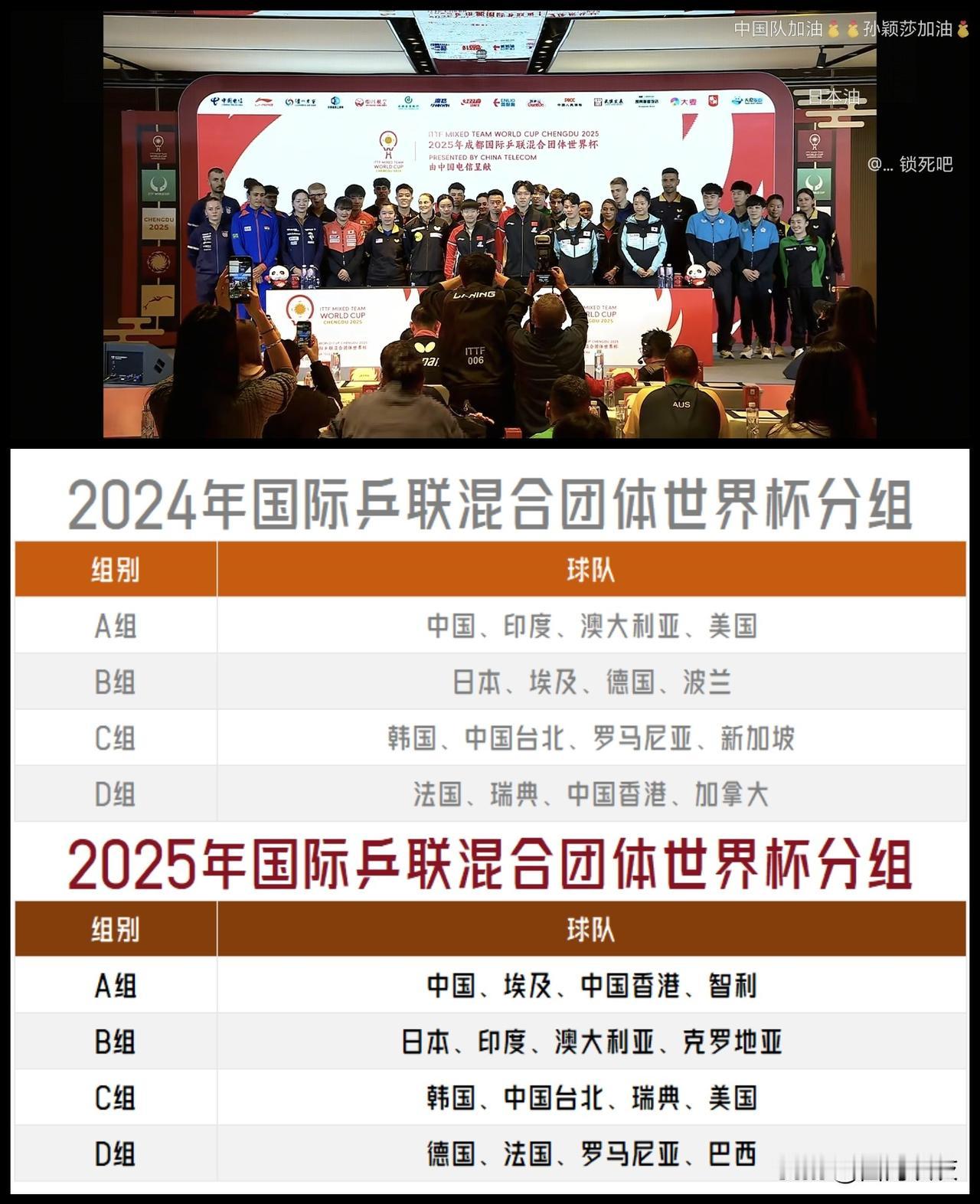 【2025国际乒联混合团体世界杯分组出炉!中国香港没避开国乒,CD组都是死亡之组!】 首先,很遗憾,中国香港没有避开国乒,但另一方面,埃及和智利都不是很强。 中国香港有望以小组第二出线。 日本抽到上上签,小组赛第一阶段毫无难度。德国、法国、罗马尼亚和巴西所在的D组堪称死亡之组,但由于雨果高桥缺赛大大降低了比赛的激烈程度,与C组出线难度相当。