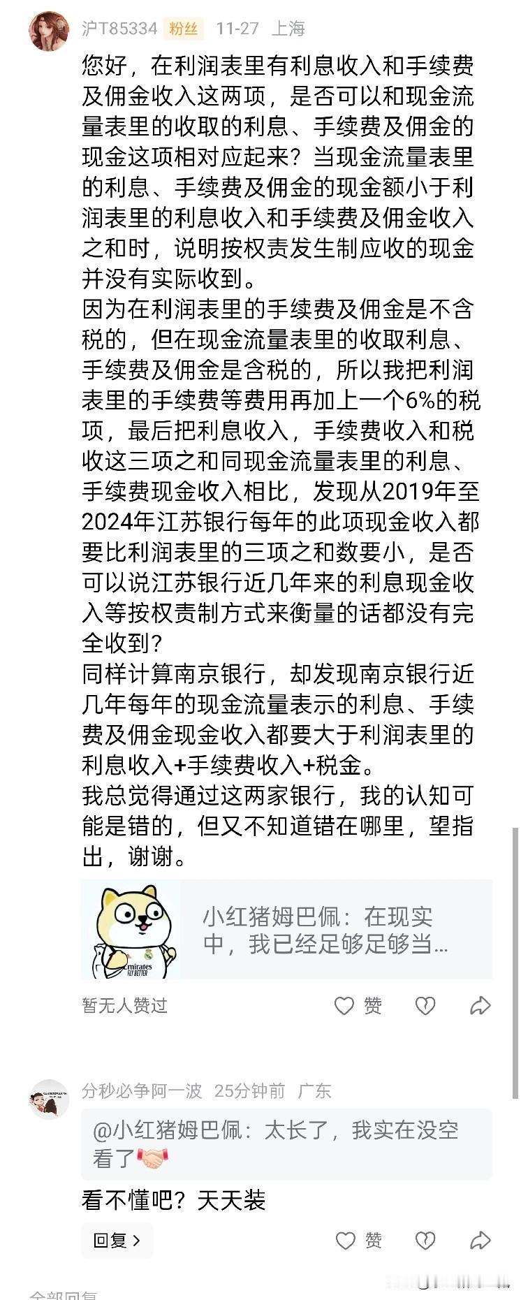 宠粉,回答两家银行报表的一个长问题…… 为了科普,评论区里朋友的提问,我都尽可能