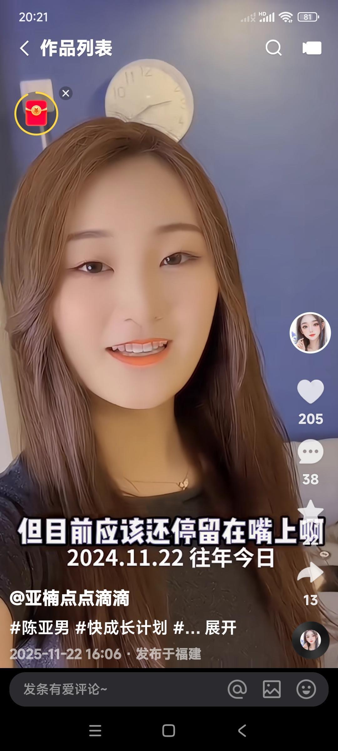真是造化弄人,陈亚楠与富贵无缘。 本来在朱家可以做富贵的人上人的少奶奶。 也可能陈亚楠有他的想法,我就不信我离开朱家,同样比做人上人的少奶奶还要强。 我有几百万的粉丝,我直播间一晚上就卖出千万,我能挣着大钱,我会发达的。 想做最后一搏,出来才发现,原来,事与愿违一场空。 后悔晚矣。