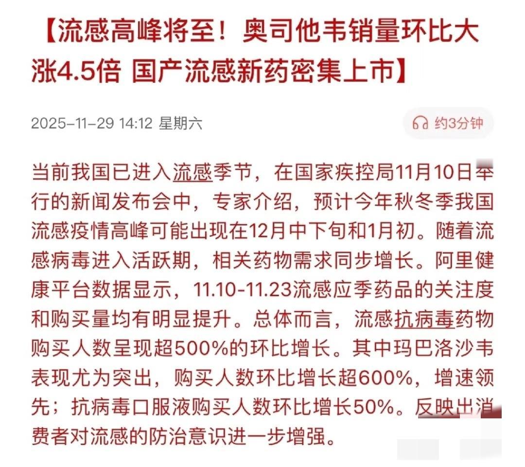 创新药,下周要爆! 如果没有孩子,可能不清楚这段时间只要人扎堆聚集的群体都是流感爆发区,典型的比如学校。我们这里很厉害,班里一半的孩子。