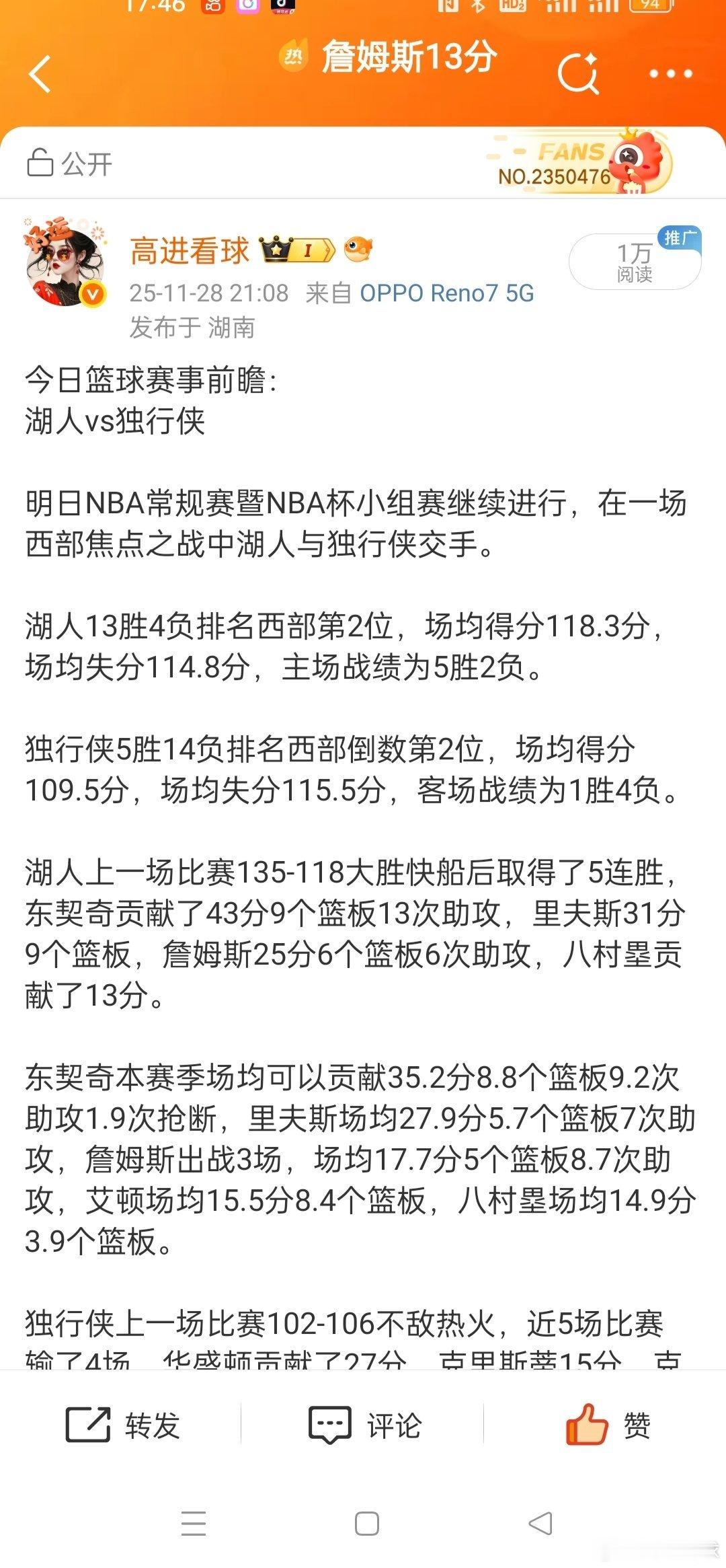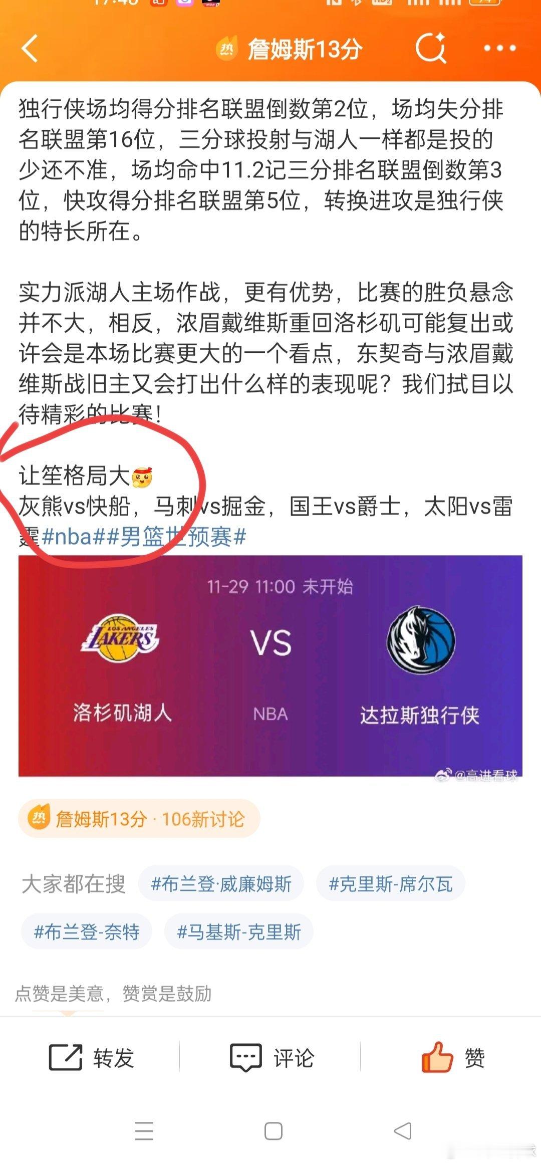连续三天都是稳稳拿捏幸福🥰湖人不负众望,以129分领先独行侠10分!湖人VS独行侠,森林狼VS凯尔特人,勇士VS鹈鹕,太阳VS掘金,快船VS独行侠。nba篮球