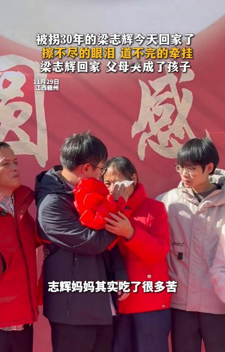 被拐30年的梁志辉今天回家了,擦不尽的眼泪道不完的牵挂。 11月29日,梁志辉回家父母哭成了孩子。志辉妈妈其实吃了很多苦,我们祝福他们好不好?看一下自己的房间。