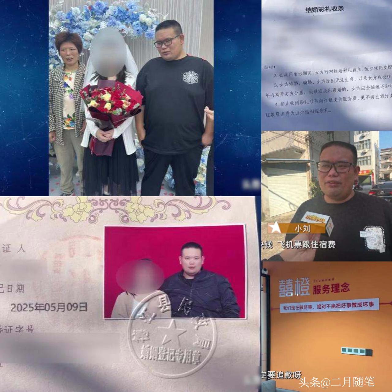 浙江男子相亲第二天闪婚! 婚后竟发现妻子… 中介:免费再给你找一个! 这年头婚介所的套路真是防不胜防啊, 浙江那个28岁小伙小刘的经历, 简直能拍成电视剧了—— 被家里人催婚催得急, 他找了家叫“东阳囍橙”的婚恋中介, 交了两万服务费, 就被安排去贵阳相亲。 结果见到女方小张才一天, 俩人居然就直接领证了! 前前后后花了36万多, 光彩礼就10万8, 更离谱的是, 中介还以“女方要治病”为由, 让他把8万块放在中介那里“托管”。 你猜怎么着? 结婚才57天, 女方说要回老家考驾照, 然后就彻底失联了! 电话也不接、 家门紧闭。 小刘去找中介讨说法, 那个负责人卢某居然说: “你自己有缺陷, 就得接受别人也有缺陷!” 还大言不惭地说, 如果彩礼追不回来, 就免费给他再介绍一个! 后来才爆出来, 中介早就知道女方欠了一屁股债, 还有传染病, 却故意瞒着不说。 所谓的“治疗期”, 根本就是钻法律空子的骗局! 所以说, 催婚再急也不能病急乱投医啊。 婚姻大事哪能像买菜一样草率? 这种把“骗婚”说成“缺陷互补”的黑中介, 真该被好好查一查! 大家找对象时也一定要擦亮眼睛, 千万别再被这种套路给坑了!