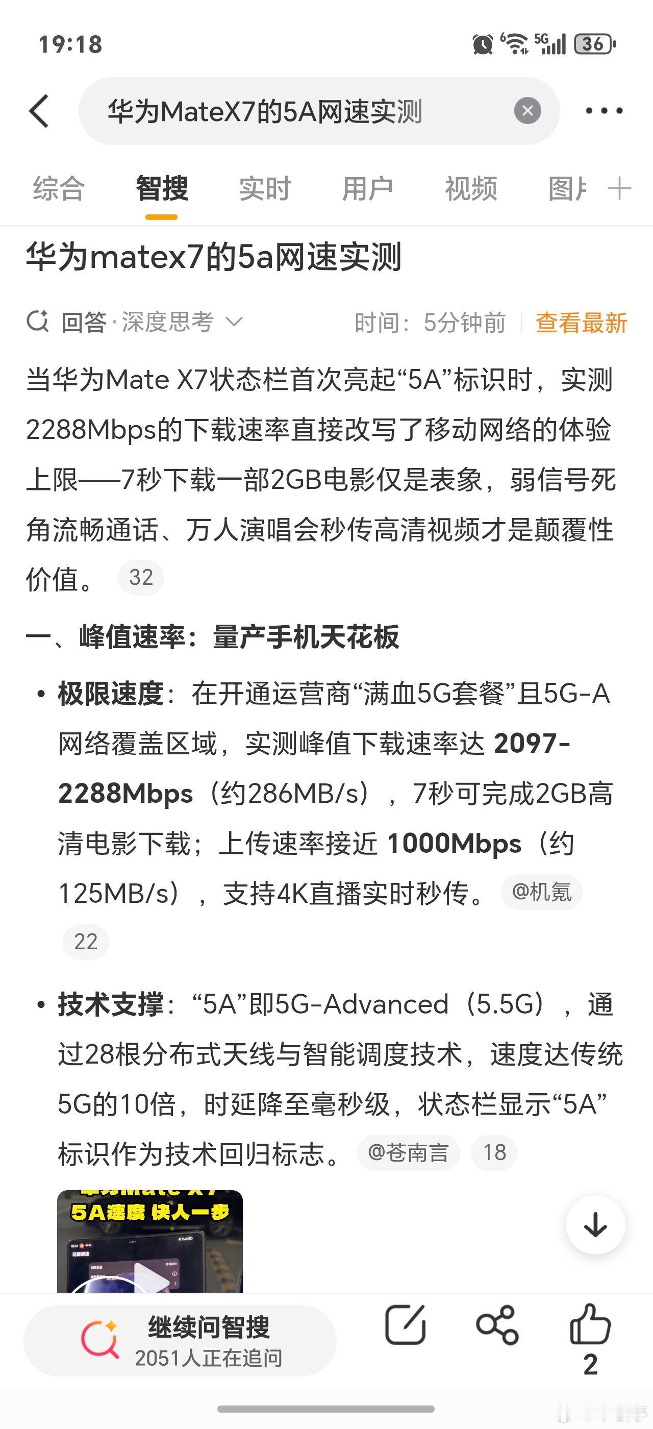 华为MateX7的5A网速实测微博智搜总结,华为5A网速确实很强啊,这是又快人一步!