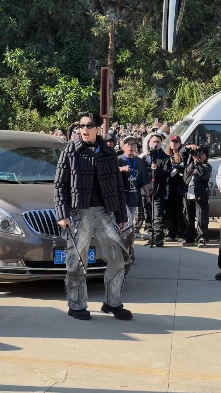 吴艳妮在成都穿着短裤大腿看起来很粗壮,表情自信又张扬