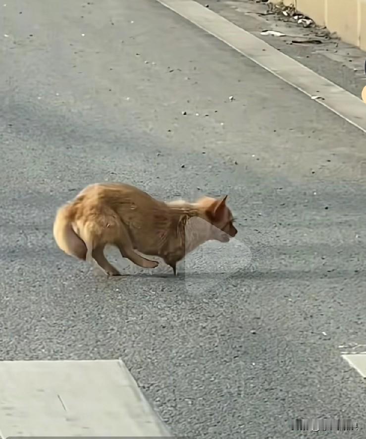 那被人遗弃的流浪狗,面前仅剩下一根骨头,为了生存,在道路上艰难前行。流浪狗 户外流浪狗