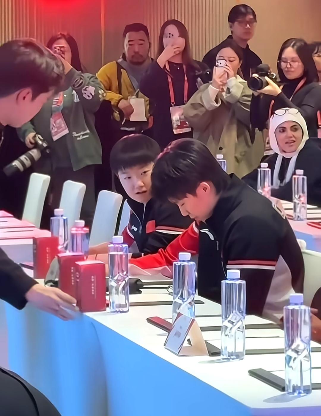 聚光灯下的孙颖莎比王楚钦要松弛!你看她就大大方方的在王楚钦边上坐下,还不时的说几句话,还要扭头看着他,王楚钦反倒是有点“装”。可能也是担心网友又给他造谣吧。孙颖莎这松弛感,就是娘胎里面带来的,真是太让人羡慕了。 我们很多人终其一生都在学习让自己在公众场合落落大方,自信,松弛,可是很多人一辈子也不到。人与人怎么能一样呢?