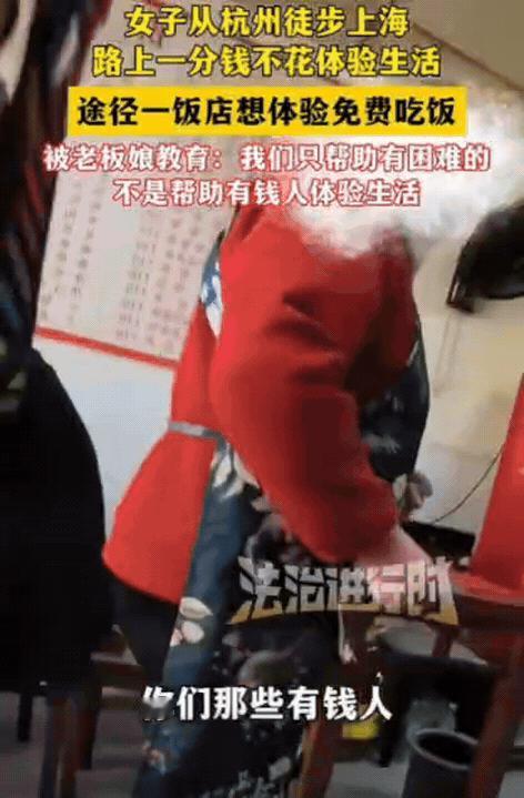 白嫖翻车了!女子从杭州徒步上海,路上一分钱不花体验生活,途经一饭店,想体验免费吃饭,结果,之前屡试不爽的套路,在这里翻车了,被老板娘教育:我们只帮助有困难的,不是帮助有钱人体验生活!女子被怼得哑口无言,狼狈离去! 这世上有一种荒唐,叫“富人扮穷体验生活,却要穷人自掏腰包买单”。 前两天在杭州前往上海的国道边,一家不起眼的小饭馆里就上演了这么一出闹剧。进门的是位特殊的客人,一身专业的户外行头,背着极其考究的登山包,脸上的妆容精致得仿佛刚从摄影棚出来。最扎眼的是那双手,十指纤纤,做了款式繁复的精美美甲。 懂行的人打眼一瞧就知道,这身装备外加那个“指尖上的艺术”,没个几千块下不来,甚至能抵得上小店好几天的流水。 可就是这位浑身上下透着“不差钱”的精致女士,坐下后连菜单都不翻,张口就是一套早已练得炉火纯青的“零元徒步”理论。她不点菜,也不打算付钱,理直气壮地跟老板娘提出要免费吃一顿,美其名曰这是在进行一场“不花一分钱徒步上海”的挑战,是一场对意志的“修行”和“体验课”。 若是换个面皮薄的店主,或许也就忍气吞声给了,但这回她是真真切切地踢到了铁板上。正在后厨和前堂连轴转的老板娘,手里的活都没停,一双利眼早已把这所谓的“落难驴友”看穿。老板娘甚至没有半分犹豫,直接拒绝,那话就像刚出锅的辣子,干脆又呛人。 老板娘的逻辑很简单:善意很贵,得给真正救急的人。咱这开门做生意,起早贪黑去菜场抢新鲜叶子菜,烟熏火燎炒上一天,挣的都是汗珠掉地上的辛苦钱,还得给房东交租。若是遇见真走投无路、衣衫褴褛的乞讨者,这顿饭请也就请了,那是积德;可面对这种指甲都不沾阳春水、明明荷包鼓囊却要来玩“生存游戏”的闲人,凭什么要让辛苦讨生活的人给她们的“情怀”买单? “你们有钱人来体验生活,我们要是都白送,全家老小就得喝西北风!”这话说得周围正在扒饭的食客们纷纷抬头,眼神里从惊讶转为戏谑。大家心里都那把尺:把别人的生计当成自己游戏的通关道具,这事儿做得不地道。 被当众戳穿了体面,这位女子的脸涨成了猪肝色,还在那强行辩解说自己不是掏不起,是“规则所限”。这话在充满了油烟和奋斗气息的小馆子里显得格外矫情,甚至有些刺耳。老板娘也没惯着,摆手让她赶紧走,别耽误做生意。最终,这位精致的挑战者只能在一众看客的注视下,灰溜溜地背起那昂贵的行囊狼狈离去。 原本这事儿也就是个饭后的谈资,风一吹就散了。可这名女子偏偏觉得心里憋屈,把自己受挫的视频发到了网上,企图用那套“虽千万人吾往矣”的配乐博取同情,顺便指责店家“冷漠”。 她低估了这届网友的眼睛,那可是比X光还毒。视频一出,大家伙儿没跟着她的节奏走,反倒是那精致的妆容和昂贵的装备成了破绽。顺着网线一深挖,好家伙,这位口口声声要“零消费体验生活”的苦行僧,名下竟然经营着十几家连锁餐饮店。 一个也是做餐饮的大老板,却跑去为难路边夫妻店,这哪里是修行,分明就是讽刺。这种巨大的反差瞬间引爆了舆论,网友们甚至都不用脏字就把她怼得体无完肤:“真正的修行是修心,不是去给劳动人民添堵”、“想体验饿肚子自己在家扛着就行,出来蹭吃蹭喝算什么本事”。 面对铺天盖地的质疑,这位“体验家”也没了当初徒步的硬气,迅速删除了视频,把账号设成了私密,试图躲进互联网的壳子里避避风头。这一场本想感动自我的表演,最终以这种最不体面的方式草草收场。