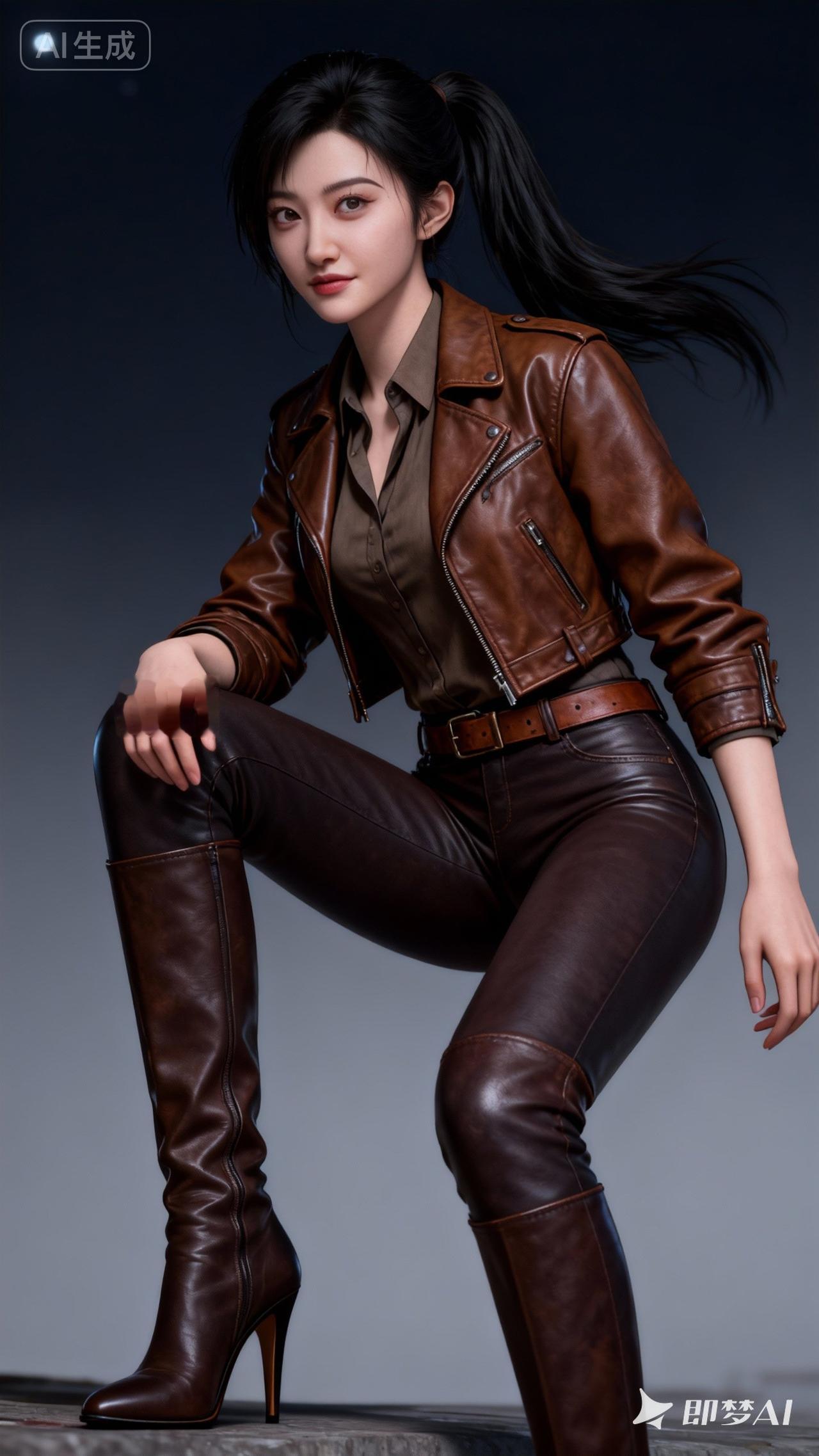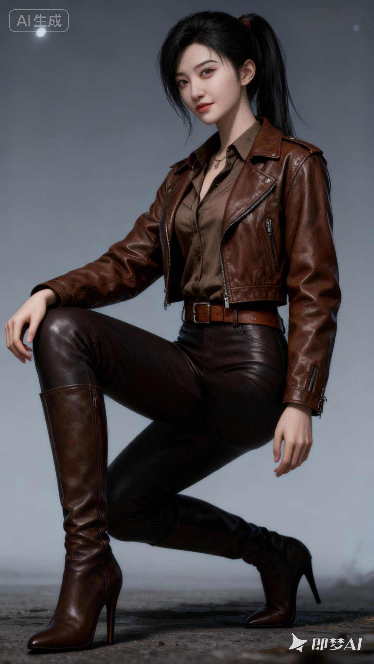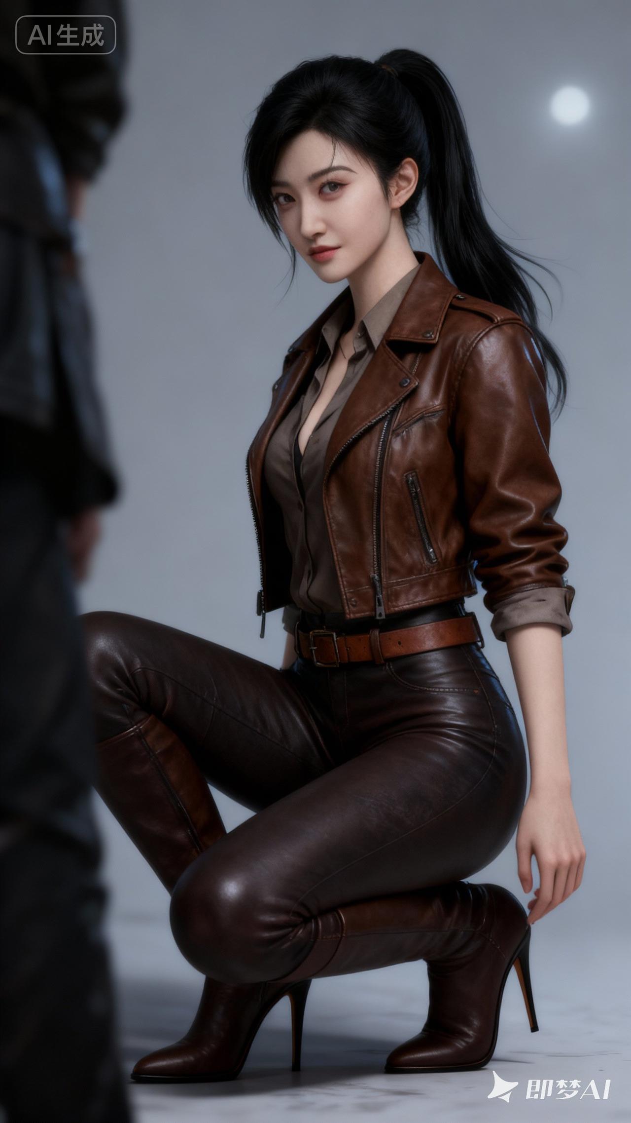 都市丽人黑色皮衣搭配,时尚又帅气,坐在公园长椅上,尽显自信魅力!👗👠💄