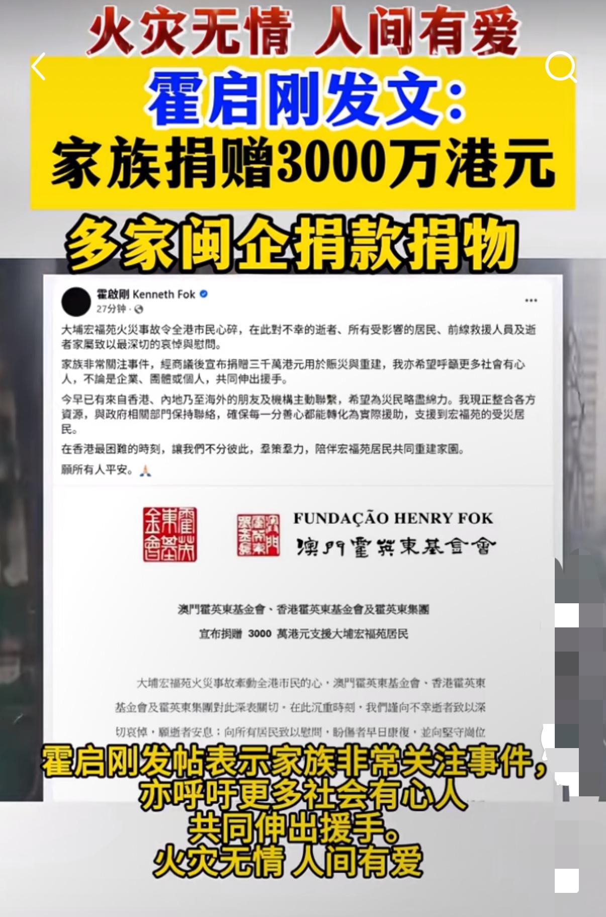 霍启刚坦言, 以后再面对灾情他不会再有无助之感了, 这并非仰仗家族的雄厚财力,也不单纯依靠政府的强大支撑,而是大家纷纷伸出援手汇聚成的力量让他满心安心。 火灾那晚,整个香港都沉浸在担忧之中,霍家迅速捐出3000万,可深知这远远不够,于是积极奔走呼吁。一时间,香港、内地乃至国外的朋友都纷纷响应。 这场景让人想起郑州暴雨时,全国人民齐心协力,捐款捐物、赶赴救援。这种团结,是战胜困难的最大底气。 它让我们看到,无论何时何地,只要团结一心,就能汇聚起磅礴力量。