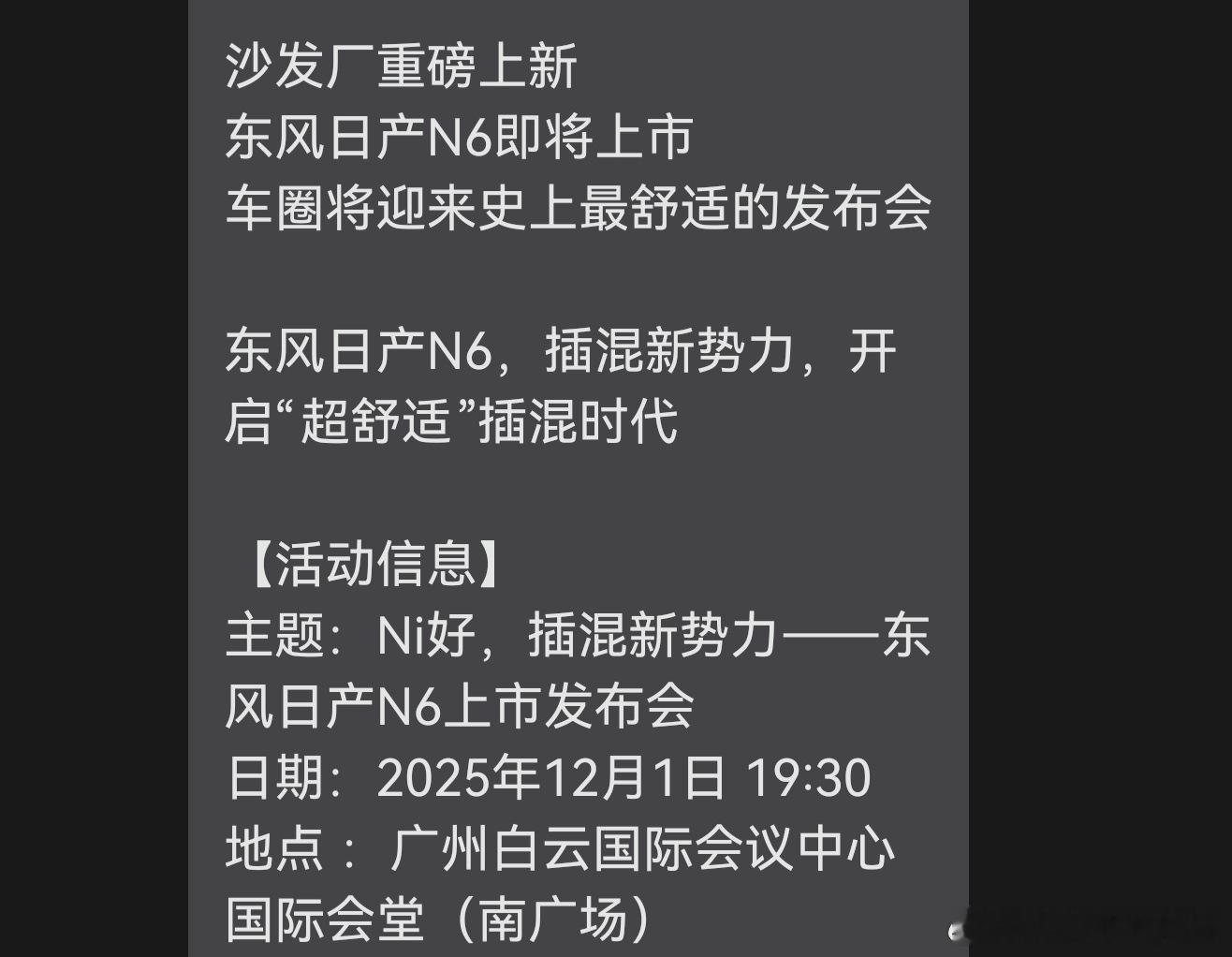 东风日产实在太疯狂了,以后卖车的同时,还能做一做家居业务,也是一举两得。作为史上最舒适的发布会,还有惊喜伴手礼,我把12月1日发布会的门票拿出来公开拍卖,估计不会有意见吧?