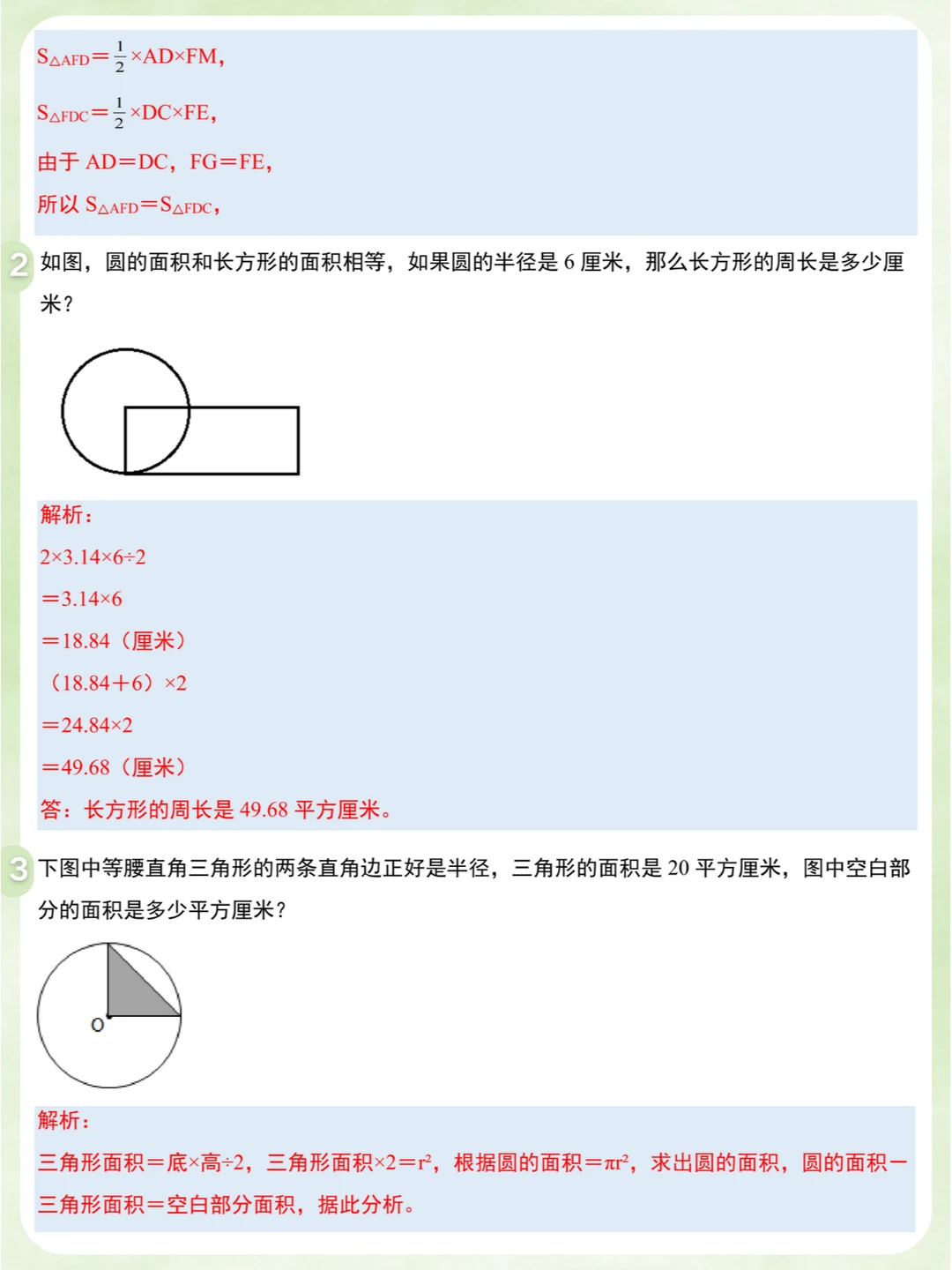 例如,已知圆的周长求面积,就需要先通过周长求出半径。