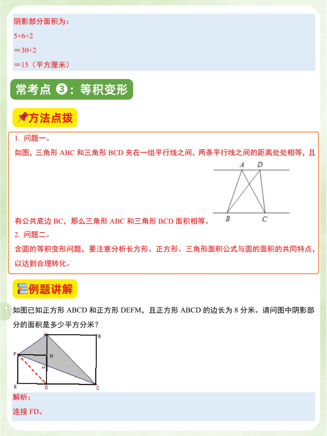 比如,求不规则多边形的面积,可能需要将其分解为多个常见图形。