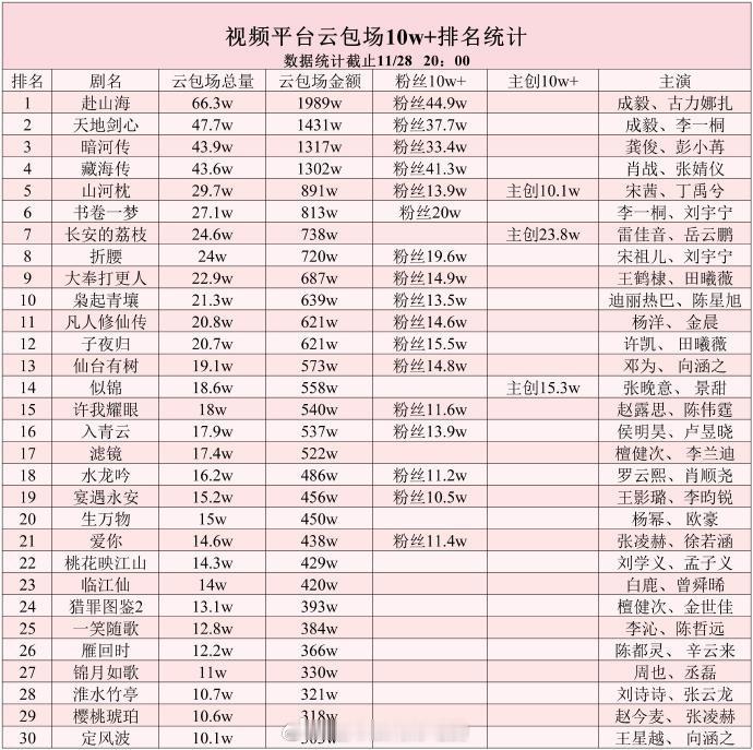 内娱云包场最新表格内娱云包场历史第一第二都是成毅的剧哦🔥实打实的活粉多氪金强