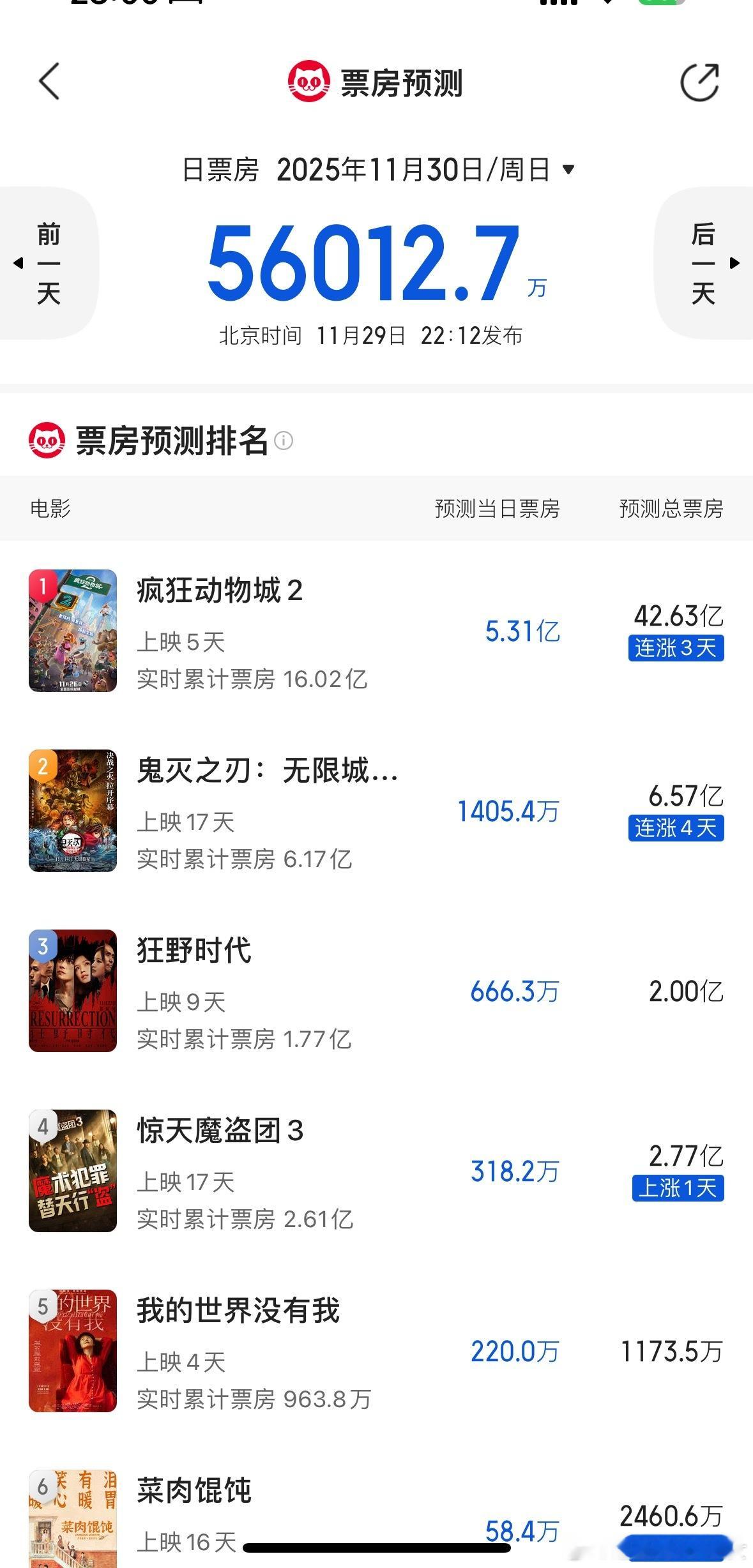 疯狂动物城2当日票房7亿多,预测票房大涨至42.63 亿,应该超过复联4,进口片史冠了。电影冷的不是档期,用心做电影作品观众自会买单啊